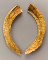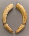 These clappers in the form of human hands were carved from a single hippopotamus tusk that was split in half. Such percussion instruments were used to keep time during dances or as part of a musical ensemble. These examples, however, were found in a miniature coffin at Amarna and seem to have been part of an offering.