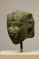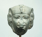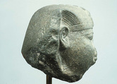 The smiling mouth, wide open eyes, and rounded cheeks suggest a youthful king, and the proportions of the nemes, along with the depth of the break, indicate that the head was part of a comparatively small sphinx. The low forehead, high eyebrows and high position of the ears are reminiscent of the head in the Metropolitan Museum of Art attributed to Mentuhotep III (66.99.3), but the eyes of the present head are larger, the cheeks leaner and the mouth more modulated. These features are also seen in the head of a statue inscribed for Amenemhat I in the Egyptian Museum, Cairo (JE 60520) and are even more closely matched by the head of a non-royal statue, also in Cairo (CG 409), which was found in the mastaba tomb of the steward Nakht at Lisht North. That mastaba is undoubtedly contemporary with the pyramid of Amenemhat I, or only very slightly later. These - and other - parallels make the identification of the present head as Amenemhat I very likely.