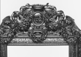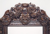 A tour de force of carver’s art, this frame, together with its pair (Rijksmuseum, Amsterdam), was most likely made to display a marriage portrait, the unidentified coat of arms in the cresting referring to the sitter. Veneered with ebony, embellished with finely carved pieces of applied boxwood and garlands of naturalistic flowers, the frame is signed by Hannart, who was active in The Hague and Leyden. This artist worked in wood as well as in stone, indicating that the traditional division between stone sculptors and wood carvers was no longer strictly adhered to at the end of the seventeenth century.