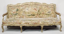 Signature: N Q FOLIOT (on back chair rail)Marking: Branded twice on seat rail stretchers: crowned initial G (inventory mark of King Georg); Incised on armrests: I