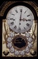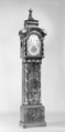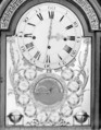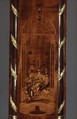 The case recalls prototypes published in Thomas Chippendale’s Gentleman and Cabinet-Maker’s Director. Below the main clock dial are the signs of the zodiac and the phases of the moon. The ring of auxiliary dials indicates the most important cities of the day (clockwise): Philadelphia. / Mexico/ Peking. / Hispahan. / Cas=Bon=Spei. [Constantinople] / Cairo. / Rom. / Lisabon/ / Londen. / St. Petersburg. Philadelphia, where the declaration of Independence would be adopted on July 4, 1776, was known worldwide for its importance as a harbor and trading center. The clock could be the one that Charles Alexander of Lorraine returned to Roentgen as partial payment for the Brussels secretary cabinet in 1776. Inside were a miniature organ and a dulcimer (now lost).A recording of the music from a similar clock (collection of Count zu Eltz), featuring compositions by Christoph Willibald Gluck, will play in the gallery once an hour.