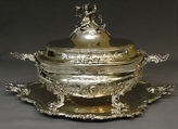 Marking: On front of stand: HBW in trefoil, maker's mark for H.B. Weyhe; T sumounted by pinecone for Augsburg, 1769-71; E [1/2 T] in rectangle - Cyrillic? On underside of tureen and interior rim of lid: HBW in trefoil, maker's mark for H.B. Weyhe; T sumounted by pinecone for Augsburg, 1769-71; E[1/2 T] in rectangle - Cyrillic?; assay