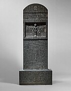 This statue represents a governor of the Saite nome (district) in the western Nile Delta, and was intended for a temple in Sais, its capital city. The temple, called the "House of the Bee," was dedicated to Osiris, who is represented standing in a shrine on the front of the statue.
