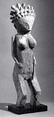 In western Madagascar, important Sakalava families place there dead in rectilinear wooden enclosures whose corners are embellished with figural sculptures of women, men, and birds. This sculpture of a woman originally adorned such a gravesite. Its bent knees, elaborate coiffure, and full bosom emphasize an ideal of female imagery that was originally paired with a male figure to suggest fertility and regeneration.The location of these figures and the orientation of the funerary structure relate to an astrologically based system of thought known as vintana. Sakalava peoples believe that the date and time of one's birth determines one's destiny, and that for each individual there exist certain points on the lunar calendar that are more or less auspicious. This system is expressed spatially through the four cardinal directions (east, west, north, and south) so that a person's vintana can be depicted by its position on a rectangle. On the tombs, male and female sculptures are frequently depicted facing each other diagonally, from opposite corners of the structure. This arrangement describes the least favorable coupling of vintana, and is considered taboo. Scholars have suggested that this reversal of prohibitions actually reinforces the sculpture's associations with fertility and abundance. In Sakalava culture, such relaxation of social mores marks events associated with birth and regeneration, such as the beginning of the New Year. It is possible that their depiction on gravesites represents a similar affirmation of fecundity.