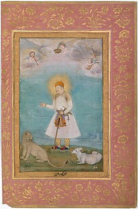 "Akbar With Lion and Calf", Folio from the Shah Jahan Album