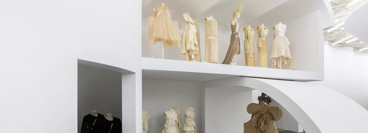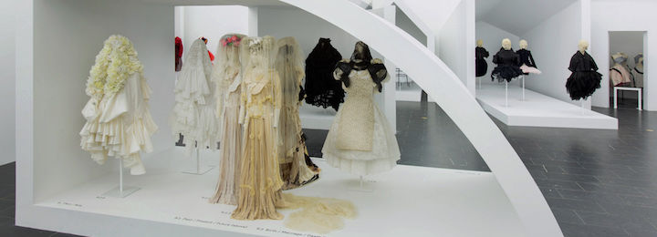 Kawakubo's experiments with "in-betweenness" relate to the unfolding of modernism as an ongoing project. This idea is explored in Then/Now, which focuses on the designer's relationship to time through the collections Modern Sweetness, Sweeter Than Sweet, Body Meets Dress—Dress Meets Body, Inside Decoration, and White Drama. Over the course of her career, Kawakubo has plumbed fashion history for inspiration. She has an affinity for the overblown silhouettes of the 19th century, achieved through bustles and crinolines. In her hands, however, the silhouettes are so radically and profoundly reconfigured as to eradicate history.