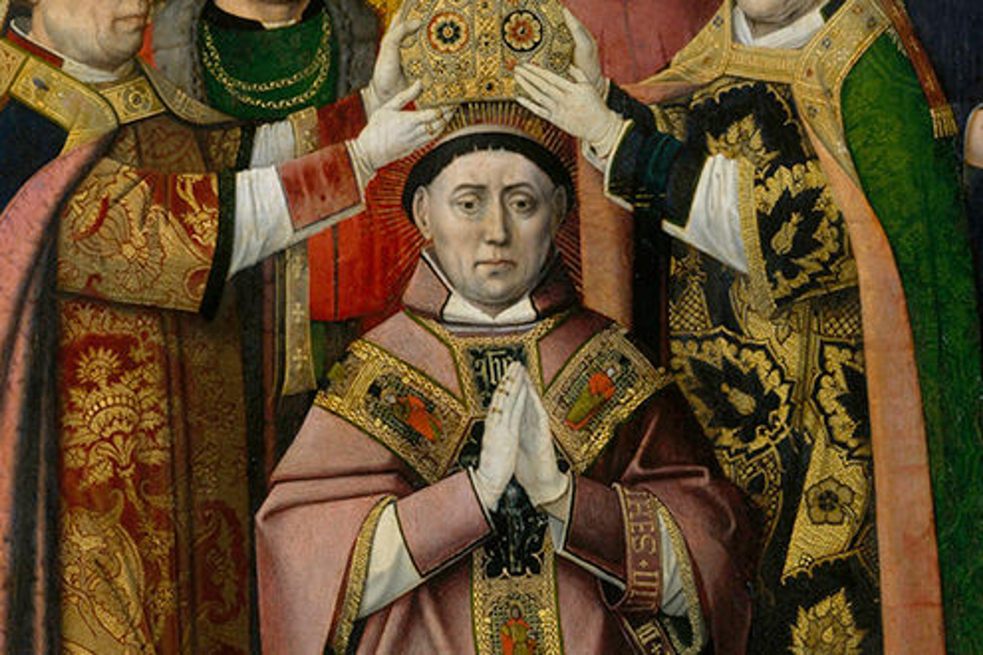 Image: Master of Saint Augustine, Netherlandish. Scenes from the Life of Saint Augustine of Hippo (detail). Oil, gold, and silver on wood. Flanders (Bruges), ca. 1490. The Cloisters Collection, 1961 (61.199).