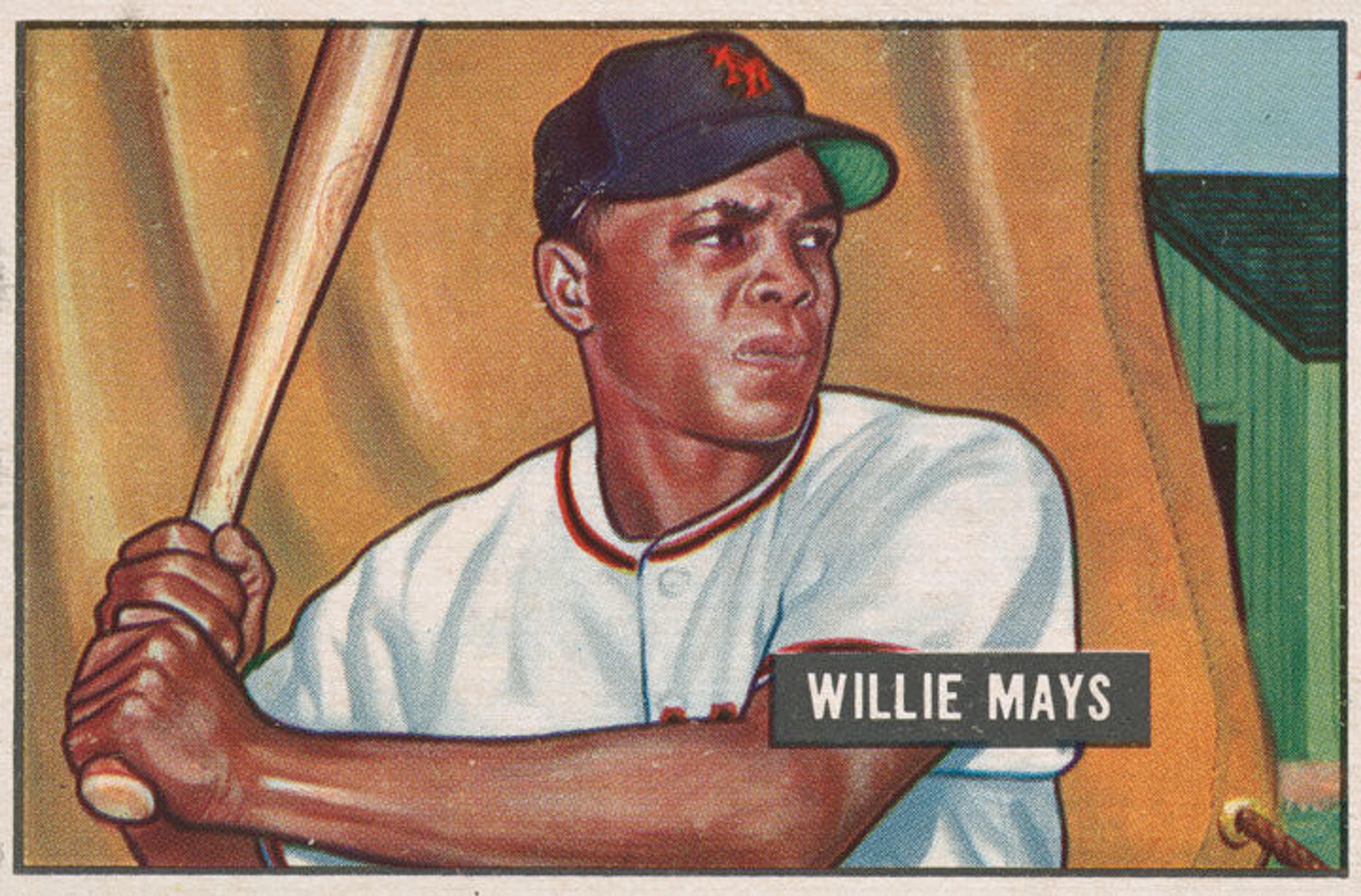 Issued by Bowman Gum Company. Willie Mays, Outfield, New York Giants, from Picture Cards, series 5 (R406-5), 1951. Commercial color lithograph, Sheet: 2 1/16 x 3 1/8 in. (5.2 x 7.9 cm). The Metropolitan Museum of Art, New York, The Jefferson R. Burdick Collection, Gift of Jefferson R. Burdick (Burdick 327, R406-5.305)