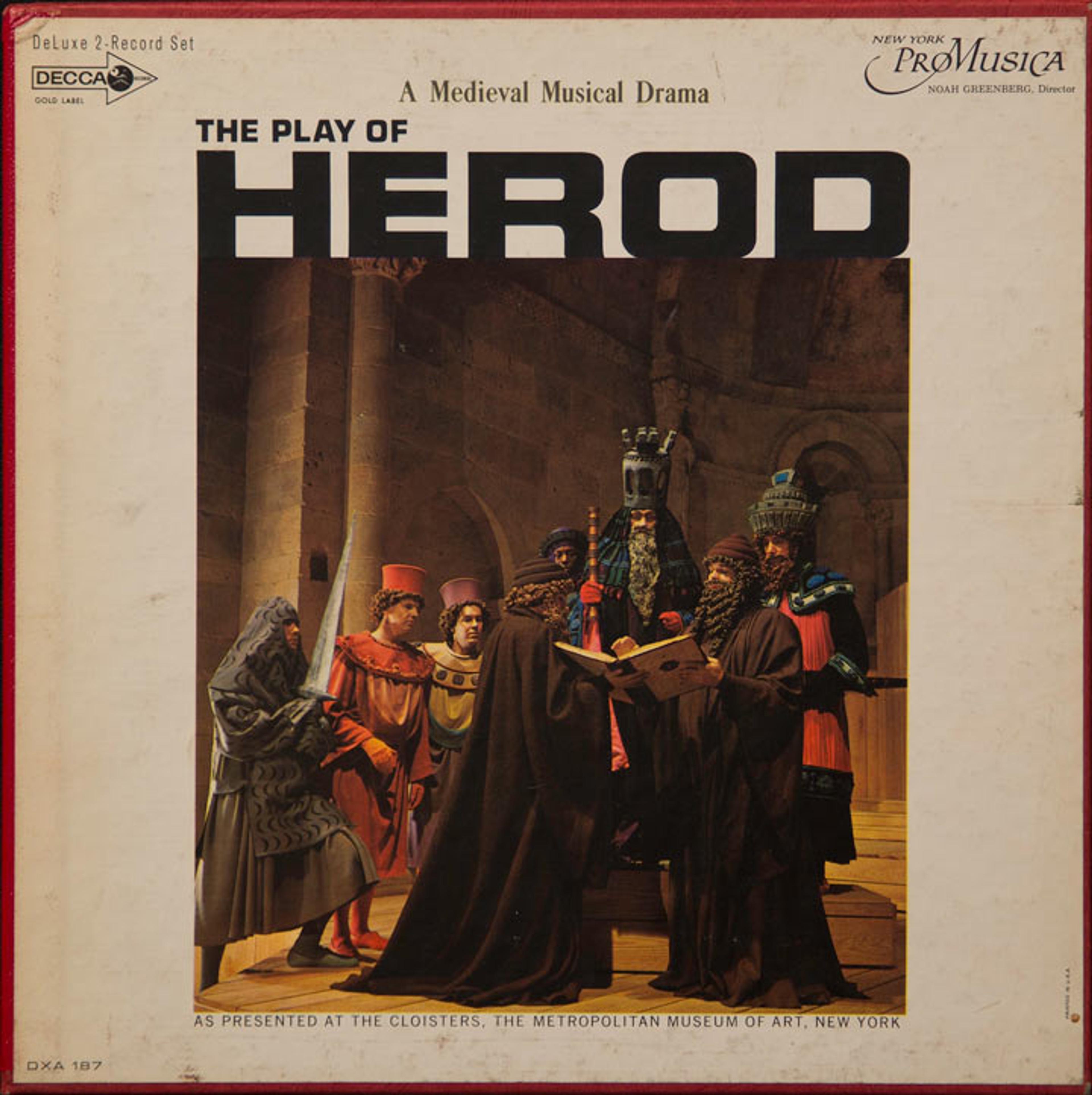 Album cover for The Play of Herod, Decca Records, 1964. Cast and images from its Met Cloisters production. Photo by Andrew Winslow