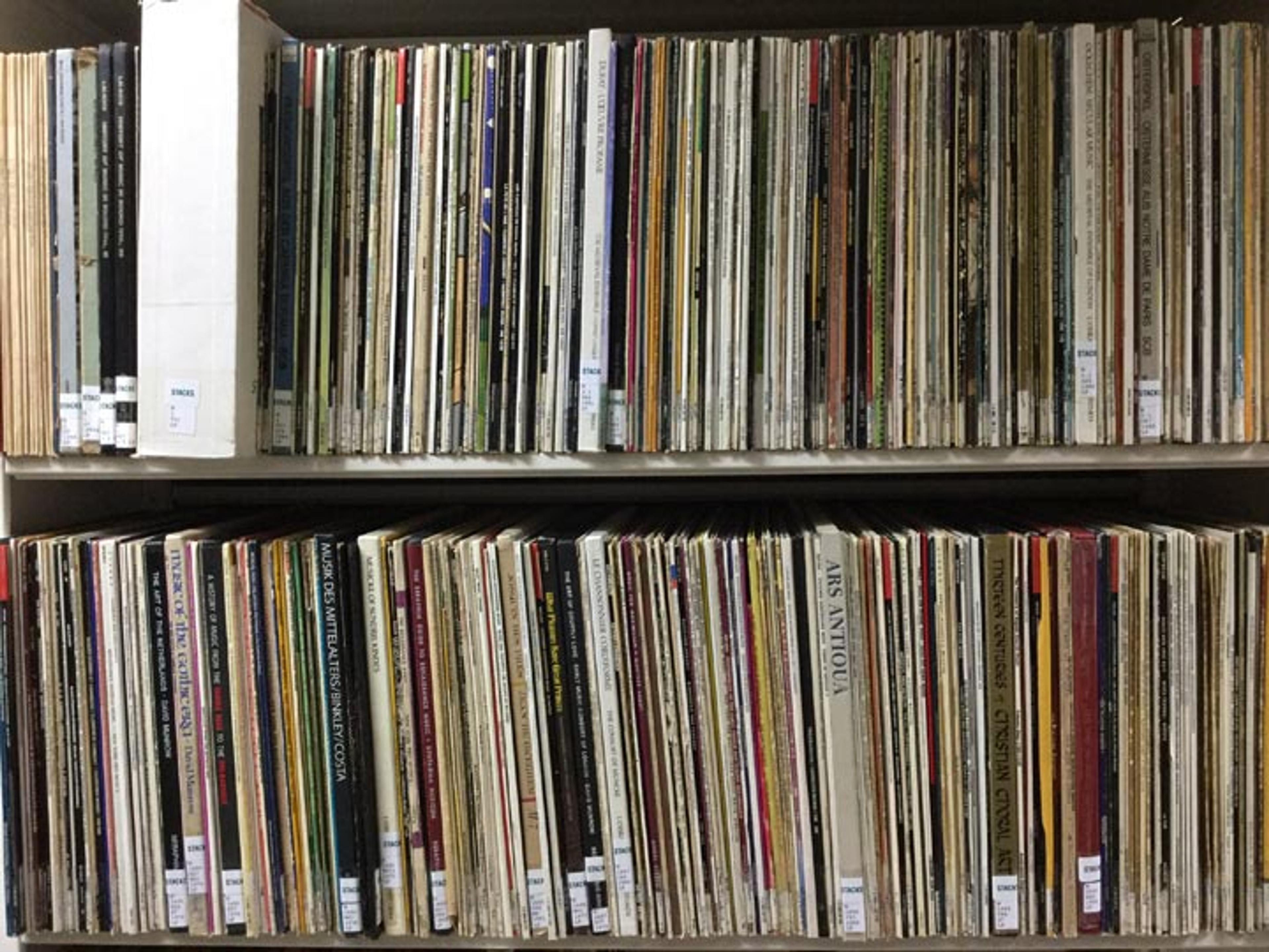 The purpose of this LP music library was not just for the gallery broadcasts, however, it was also an important resource used by Met Cloisters programming staff to keep abreast of the activities and developments of the global early-music community, and to aid in the programming of museum concerts.