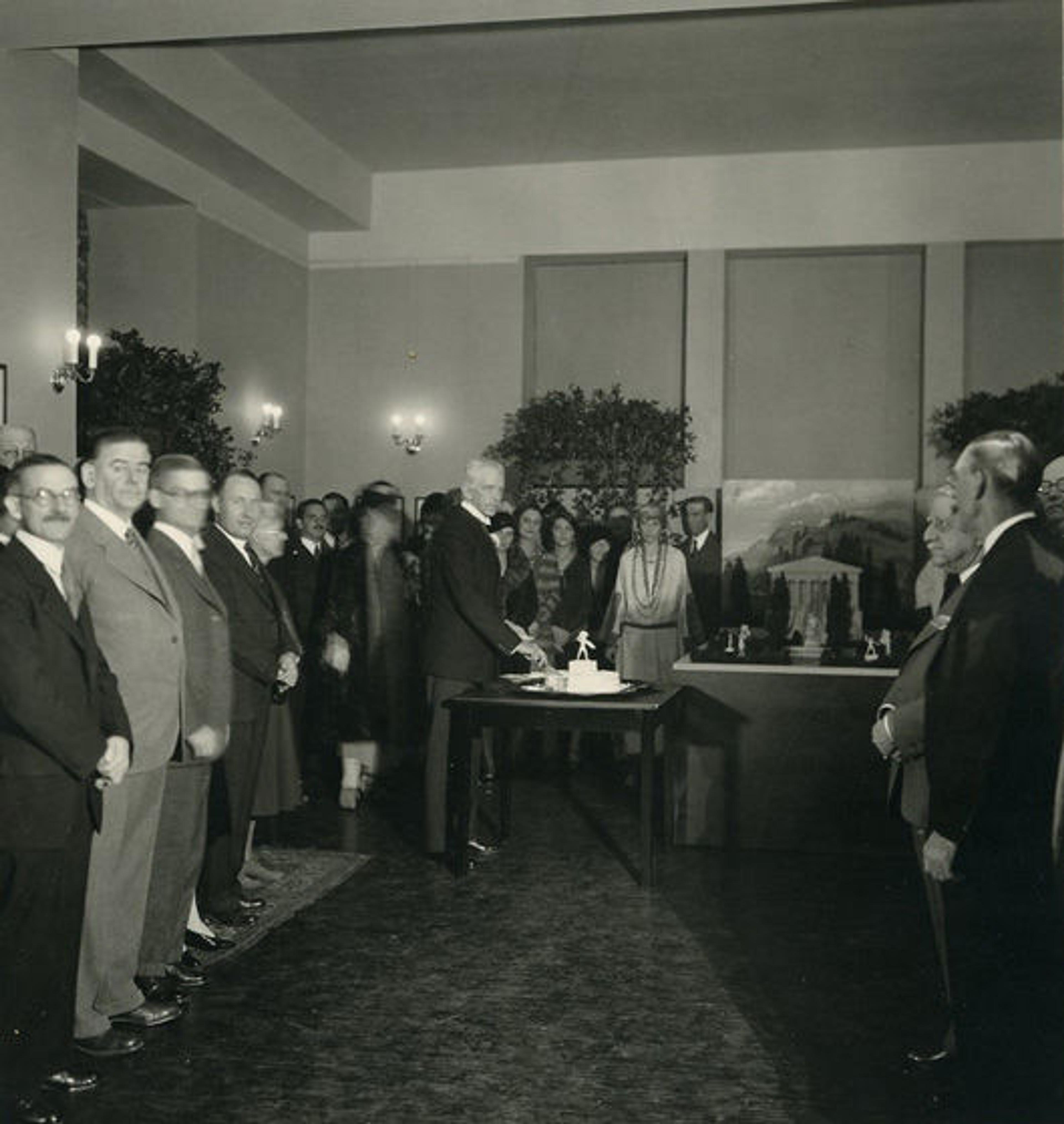 Despite Robinson's support of all the Met's curatorial departments, his particular expertise in classical art was noteworthy and merited celebration. In 1928, at the occasion of Robinson's seventieth birthday, Museum staff members gathered around a cake resembling an ancient temple, its portico lined with birthday candles, staged in a miniature courtyard. To enliven the scene, staff of the Classical Department dressed in Greek costume and mingled with the crowd.