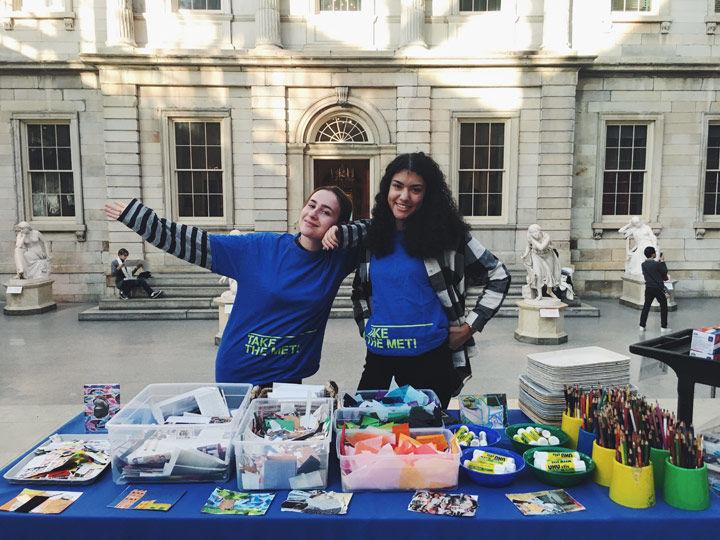 High School Interns Camryn (left) and Greer (right) at the Post Your America station in The Charles Engelhard Court during the October 2016 Teens Take The Met event. Photo by Patrick Gilfillan