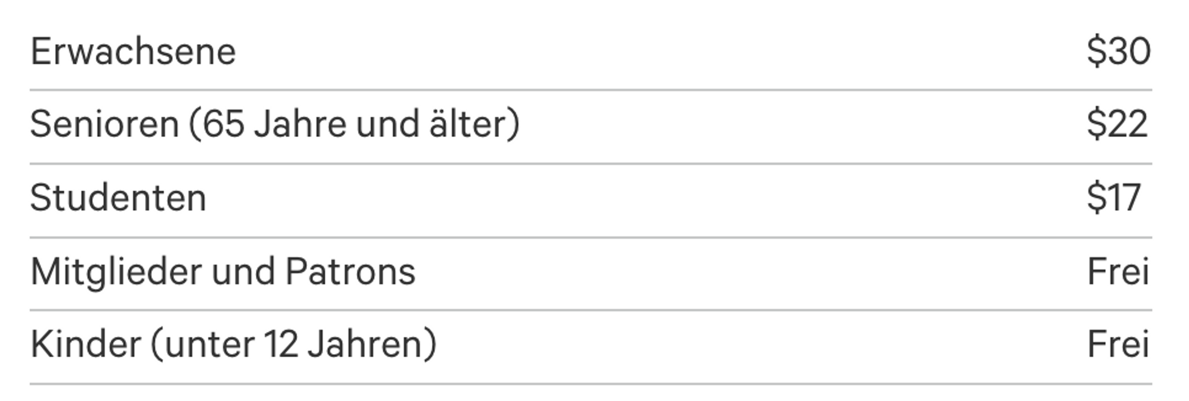 Allgemeiner, ermäßigter und freier Eintritt