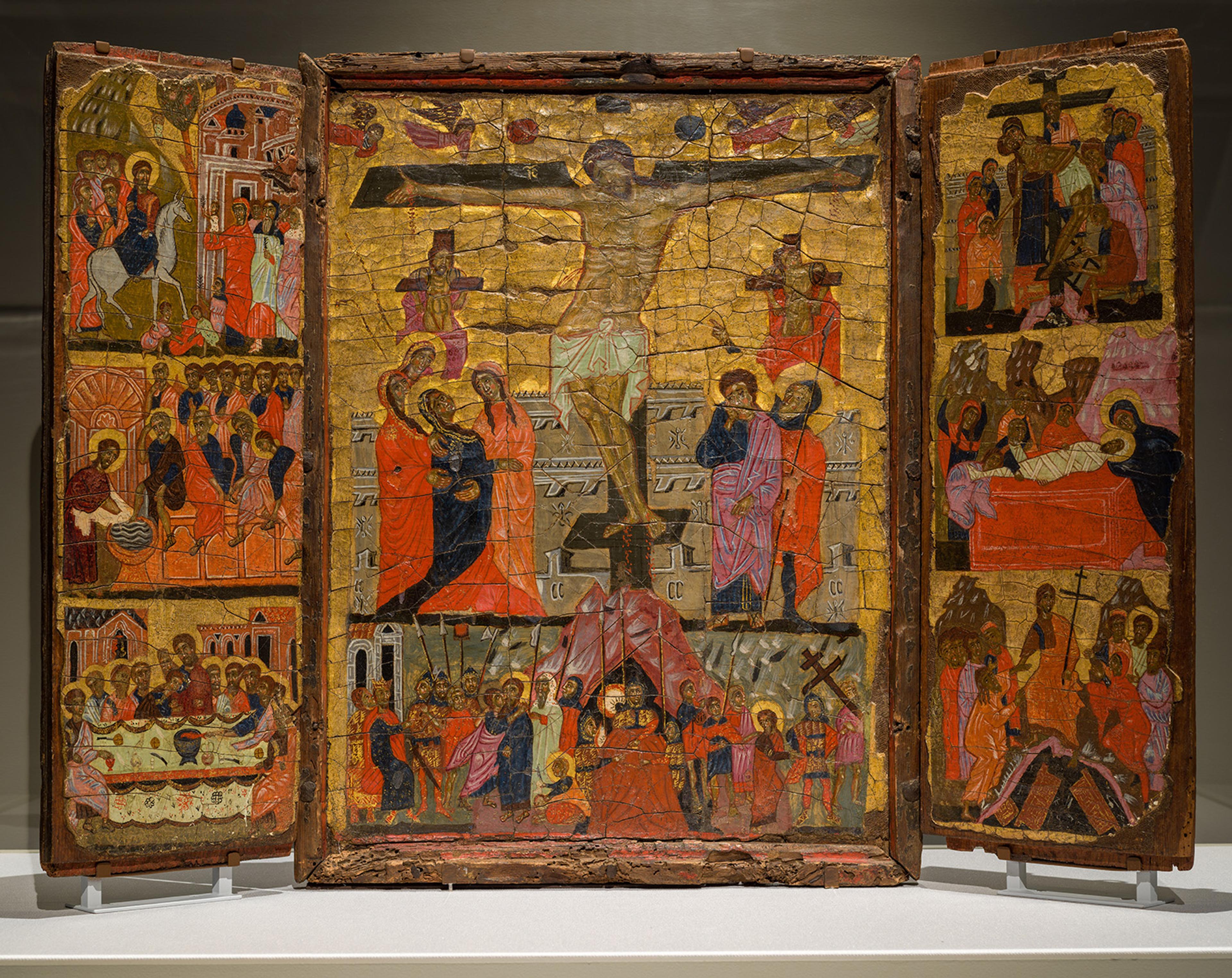 Triptych with Crucifixion, 13th–15th century. Coptic (Egypt). Tempera on wood, 29 5/8 × 22 1/16 in. (75.2 × 56 cm) 26 13/16 in. (68.1 cm). The Coptic Museum, Cairo. Courtesy Coptic Museum, Cairo
