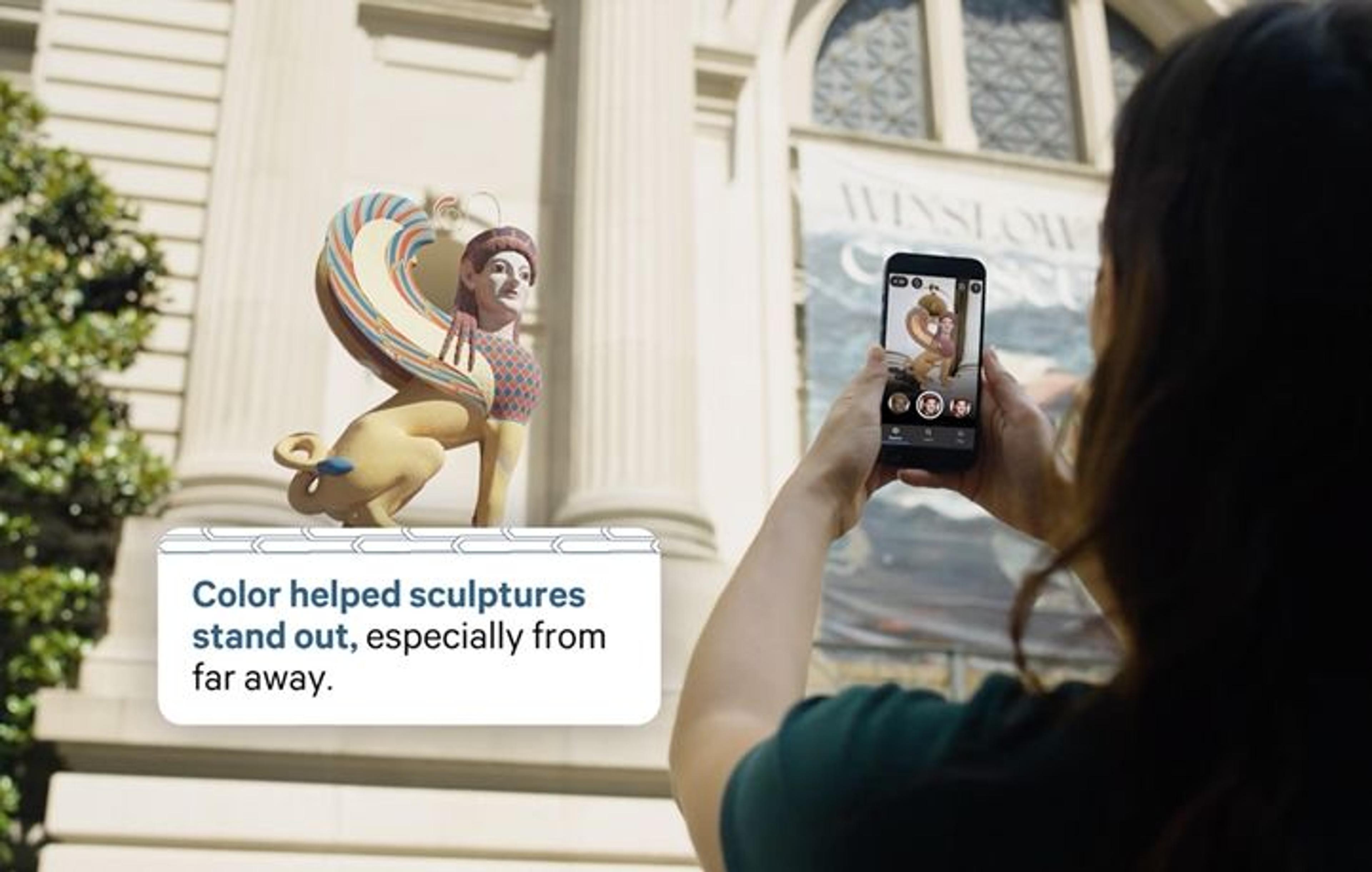 The Chroma AR experience allowed smartphone users to virtually recreate an ancient Greek sculpture of a sphinx in full color, in their own space, comparing the vivid reconstruction and as it looks today. The project featured both interpretive and playful components that reflect collaborative work among scientists, imaging specialists, conservators, technologists, art historians, and others.