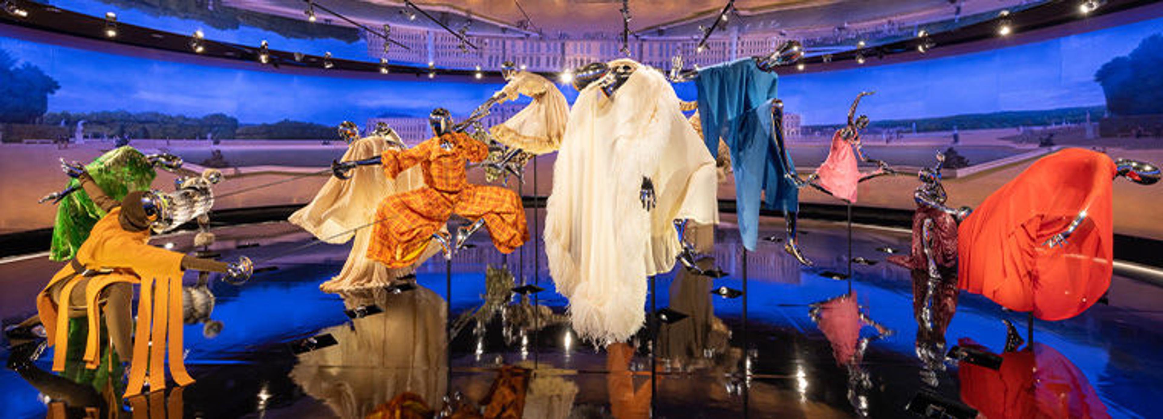 The ensembles displayed here against John Vanderlyn’s panoramic view of Versailles were shown either at the original event or in the participating designers’ concurrent seasonal runway presentations.