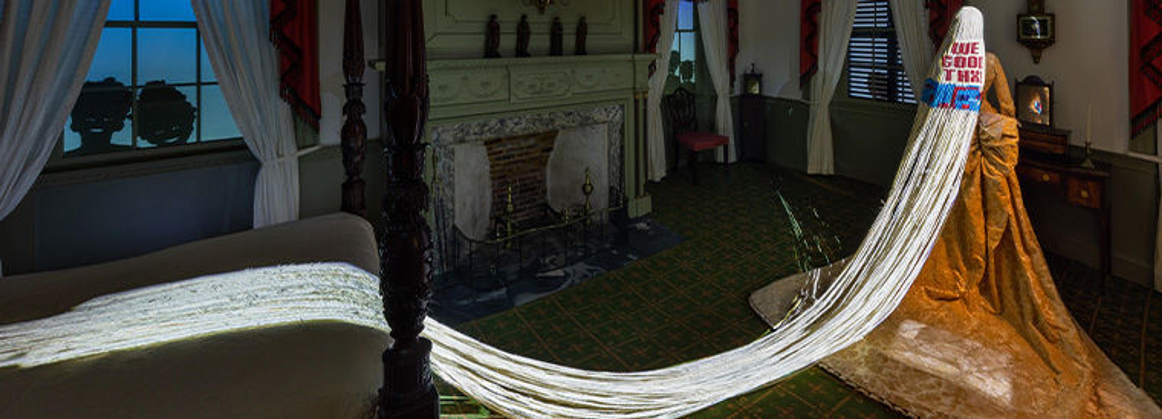 The installations take the form of cinematic vignettes that enliven the stories and highlight the intimate and immersive aspects of the rooms. These fictional tableaux were created by nine film directors: Radha Blank, Janicza Bravo, Sofia Coppola, Julie Dash, Tom Ford, Regina King, Martin Scorsese, Autumn de Wilde, and Chloe Zhao. Seven “case studies” offer in-depth, forensic analyses of individual costumes that function as connecting threads. Together, they comprise an anthology that challenges and complicates received histories, offering a more nuanced and less monolithic reading of American fashion, and American culture more broadly.