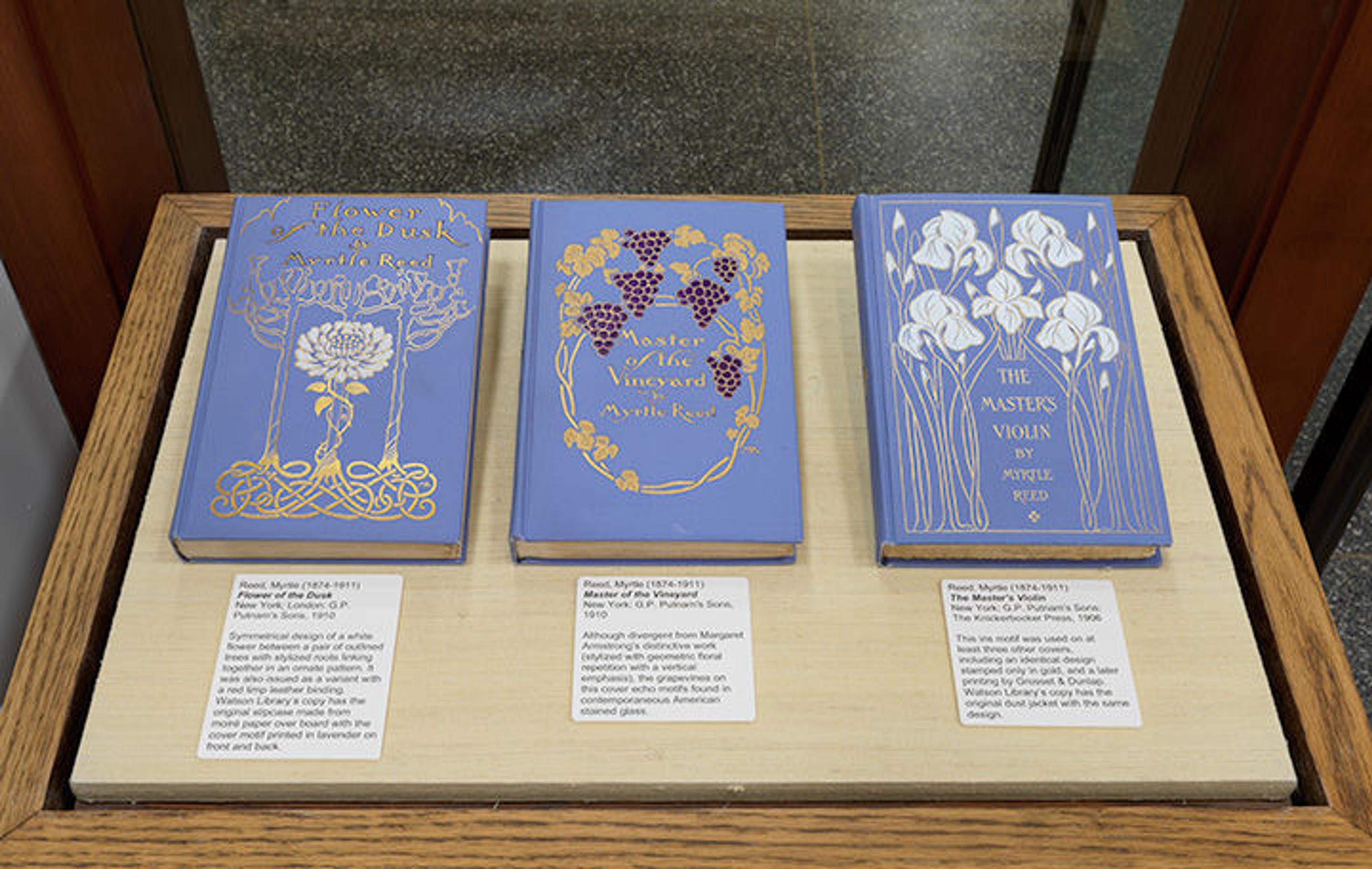 Author Myrtle Reed had success with her novel Lavender and Old Lace (1902), and thereafter all fifteen of her books published by G.P. Putnam's Sons were designed by Armstrong and covered in this distinctive lavender ribbed cloth. Six of the seven lavender titles in Watson’s collection are featured in this exhibition.