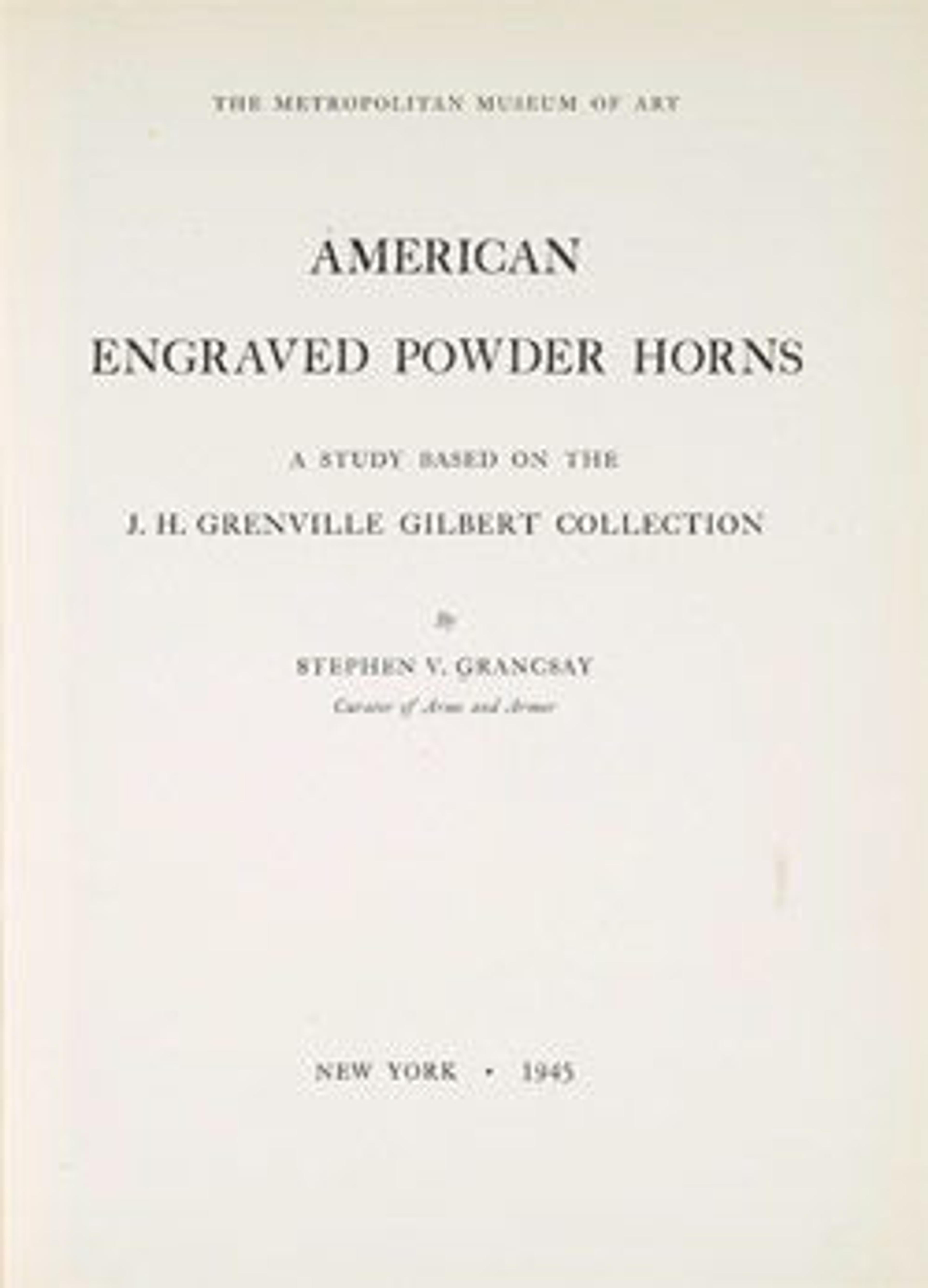 This catalogue deals primarily with the collection of American powder horns and primers formed by J. H. Grenville Gilbert, of Ware, Massachusetts, and generously presented to The Metropolitan Museum of Art in 1937. An essay on American engraved powder horns and a résumé of the Gilbert collection precede the catalogue, which consists of detailed descriptions of the individual pieces and notes of genealogical or historical interest. Each horn in the collection is illustrated by a collotype reproduction and, with one exception (an undecorated horn), by a line drawing of the engraved area. An indexed checklist of the collections records the pertinent details of each powder horn.