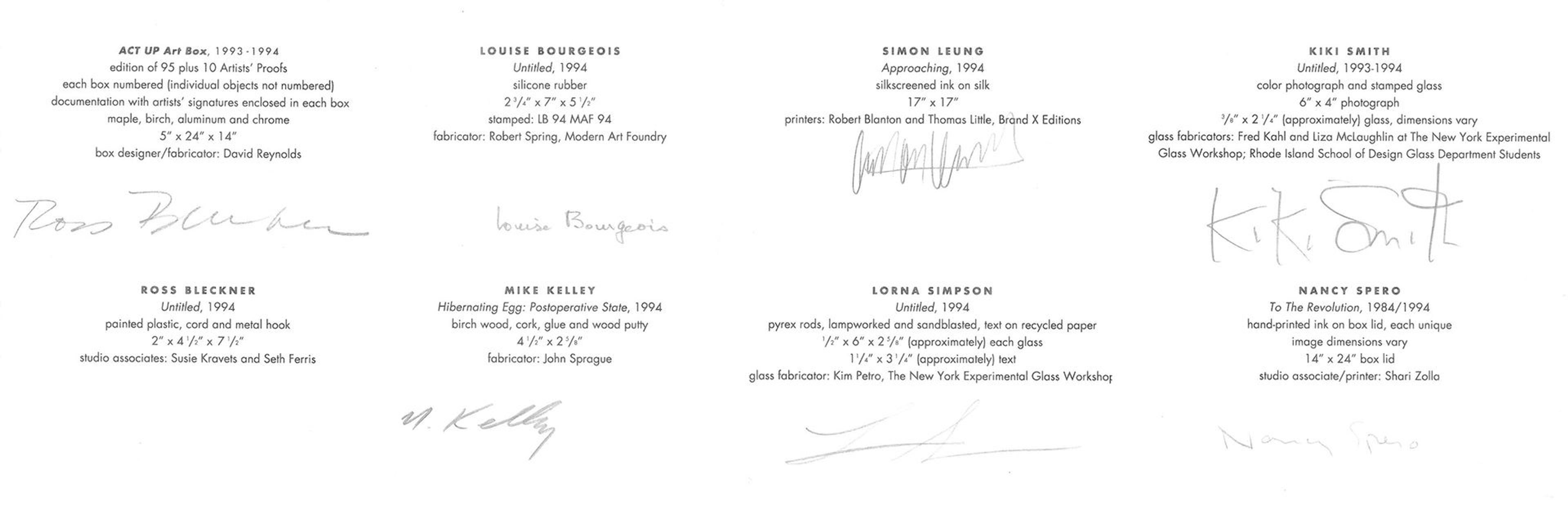 Each edition of the ACT UP Art Box was accompanied by a set of foldout documentation, signed by each of the artists.