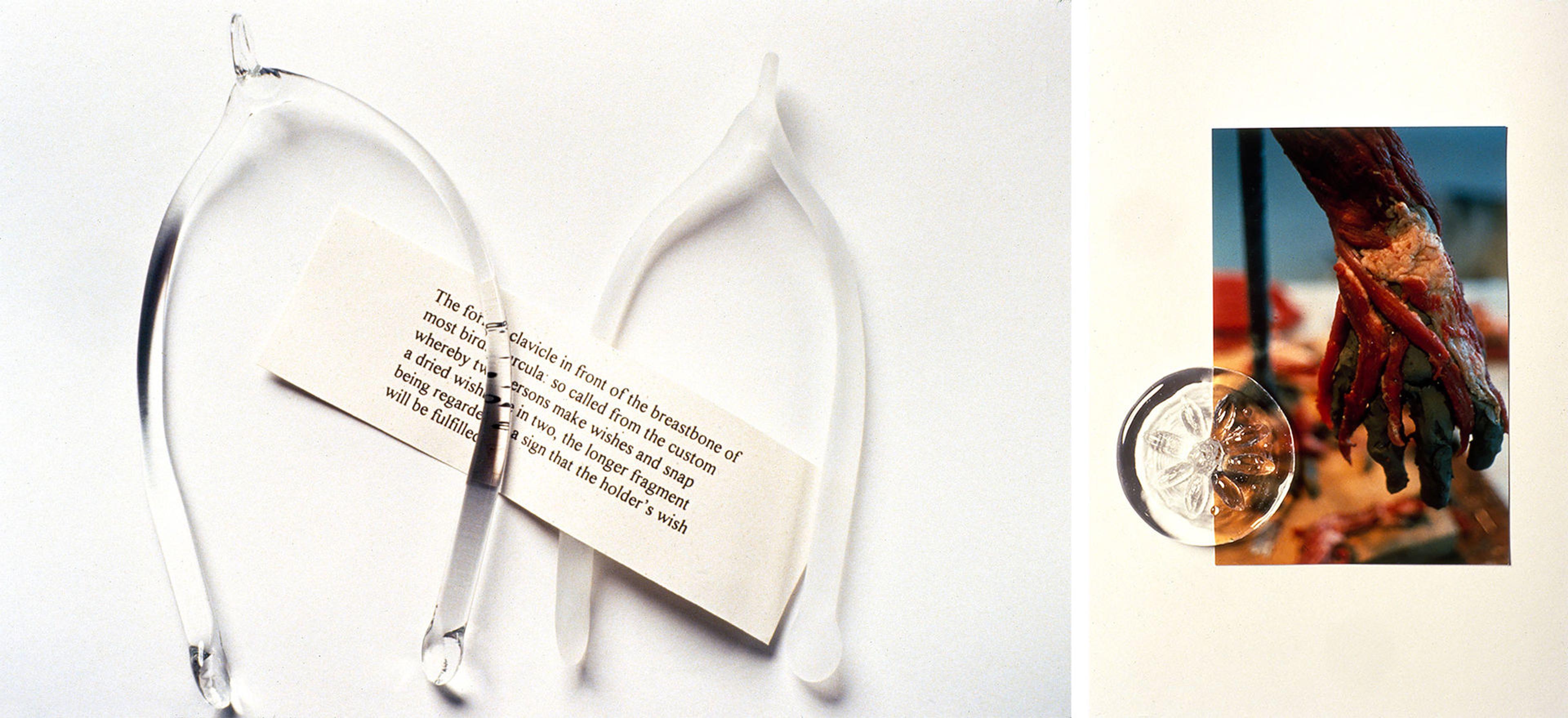 Left: Lorna Simpson (American, 1960). Untitled, 1994. Glass and printed paper, sandblasted glass: 1 3/8 x 3 1/2 x 6 in. (3.5 x 8.9 x 14.2 cm); lampworked glass: 3 1/4 x 2 7/8 x 6 in. (8.3 x 7.3 x 15.2 cm); printed paper: 3 1/4 x 5 1/2 in. (8.3 x 14 cm). The Metropolitan Museum of Art, New York, Purchase, Anonymous Gift, 1995 (1995.42h–j). © Lorna Simpson. Right: Kiki Smith (American, born Germany, 1954). Untitled, 1993–94. Glass and chromogenic print, glass: 3 in. x 3 in. x 1/2 in. (7.6 x 7.6 x 1.3 cm); chromogenic print: 6 x 4 in. (15.2 x 10.2 cm). The Metropolitan Museum of Art, New York, Purchase, Anonymous Gift, 1994 (1995.42.d–e). © Kiki Smith