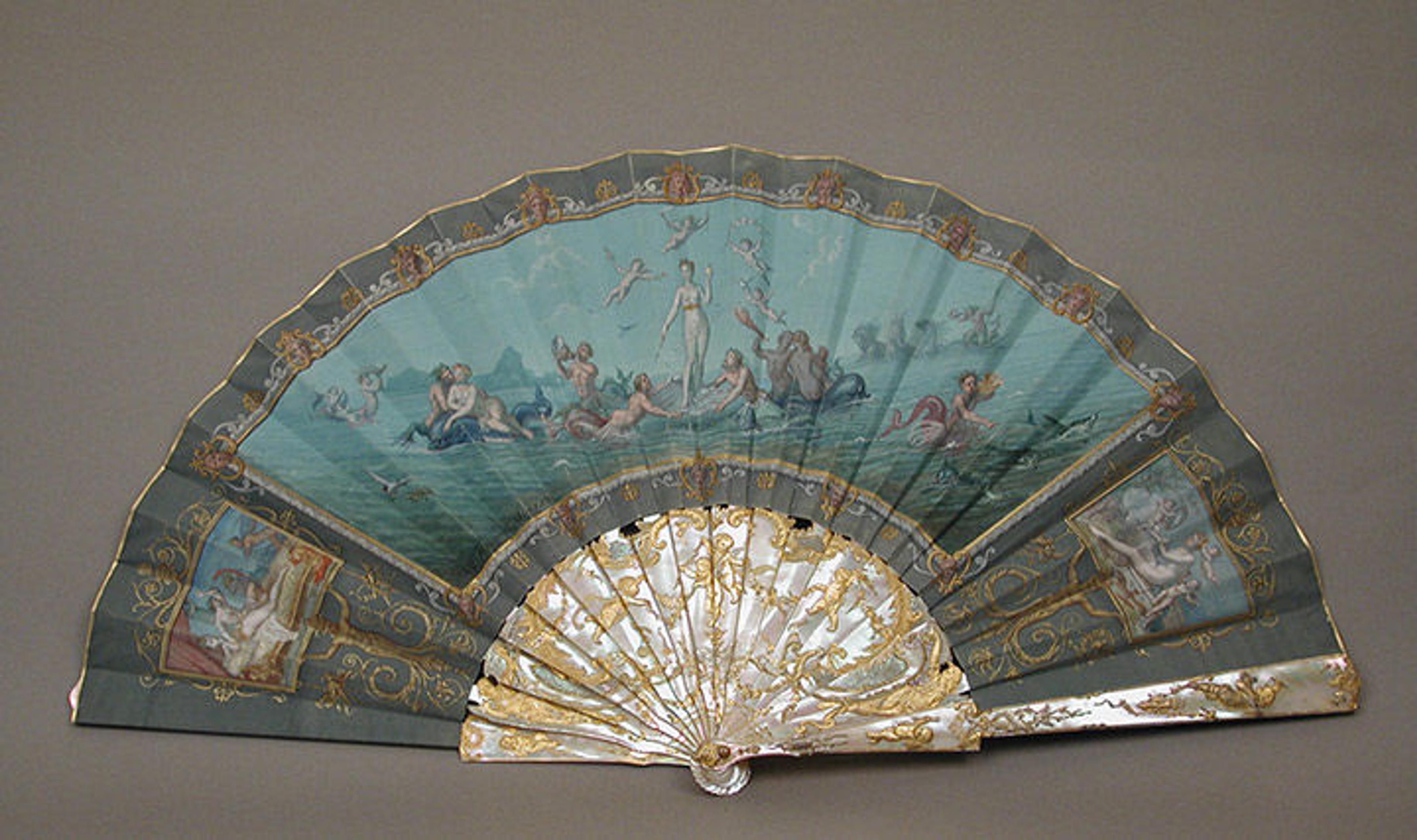 Fan leaf designed and painted by Edouard Moreau (1825–1878). Fan, ca. 1860–75. French. Paper, parchment, paint, mother-of-pearl, and metal, 11 1/8 x 21 1/2 in. (28.3 x 54.6 cm). The Metropolitan Museum of Art, New York, Gift of Mrs. William Randolph Hearst, 1965 (65.80.7)