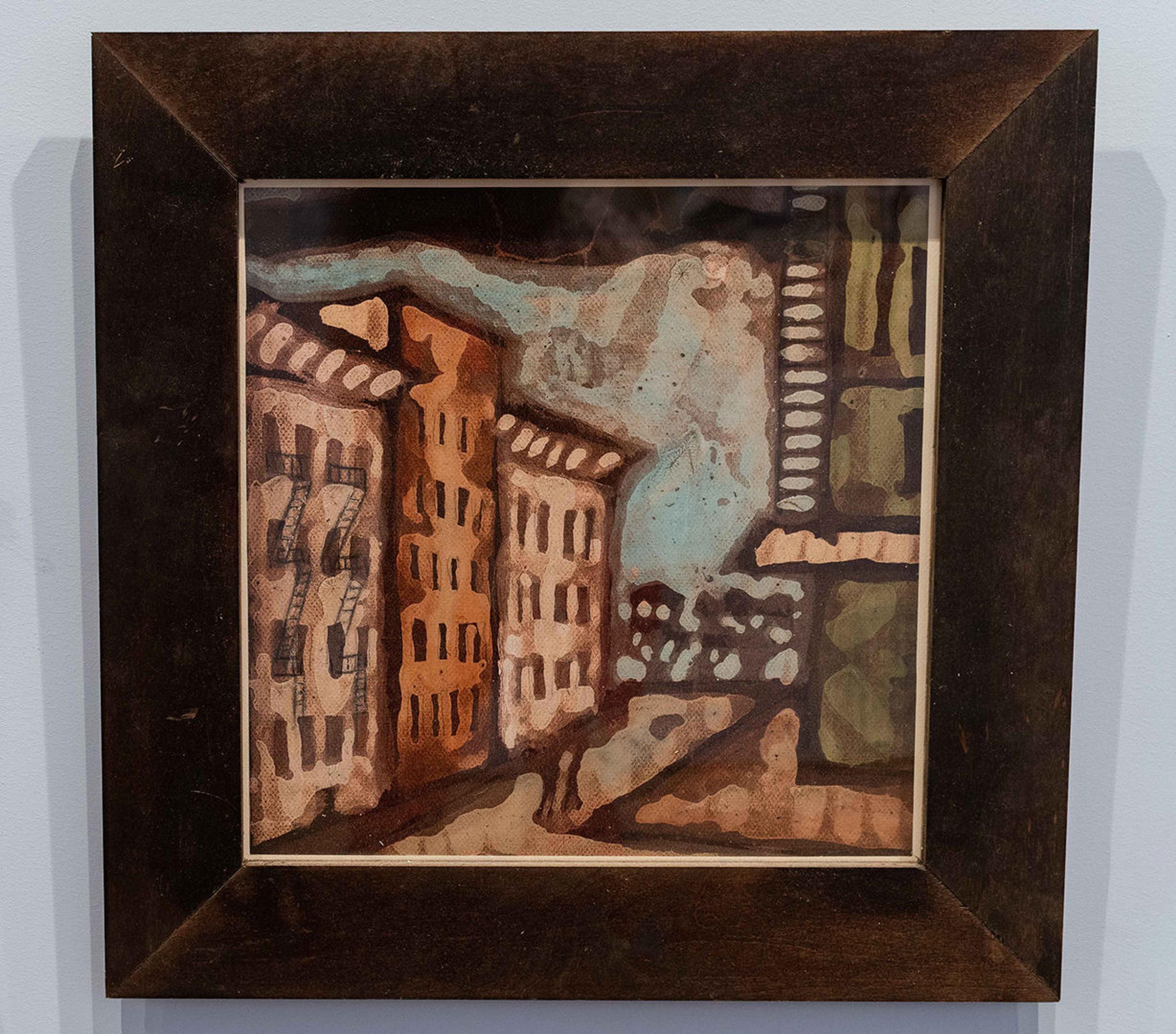 This piece is based loosely around a short story “White Nights” by Fyodor Dostoevsky in which the narrator walks city streets at night. My work, although very much of New York, is influenced by my growing up in Glasgow, Scotland. Then it was a dark, gray, foreboding, and aging Victorian city. In my youth, heavy industry was at an end, leaving empty, dead, lonely, old buildings, run-down towns and unemployment. I work from sketches and drawings of various parts of New York City to create an atmosphere that is familiar to me. Of course, there are many artists who influence me, Albert Pinkham Ryder and Georges Rouault to name but two.
