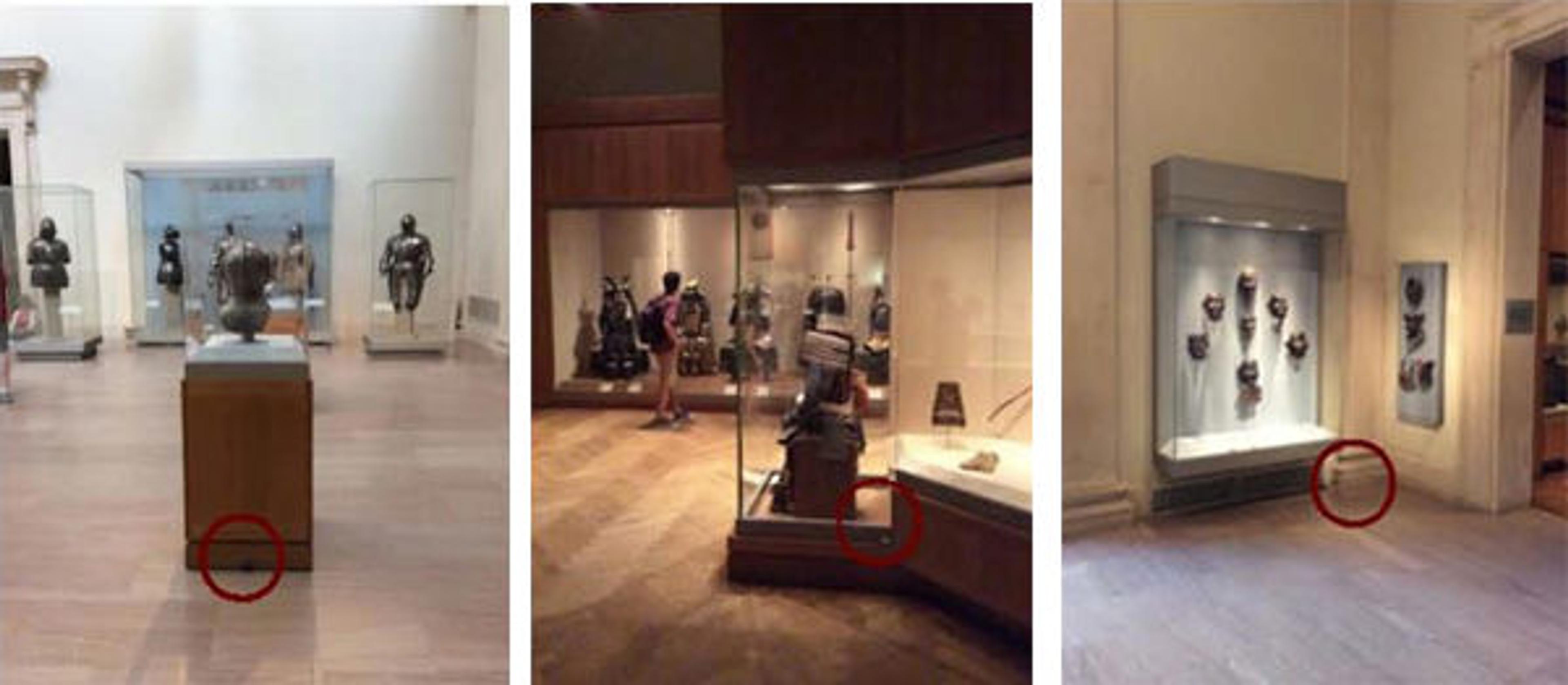 Fig. 8. Beacon testing performed in the Arms and Armor galleries. Beacons are circled in red.