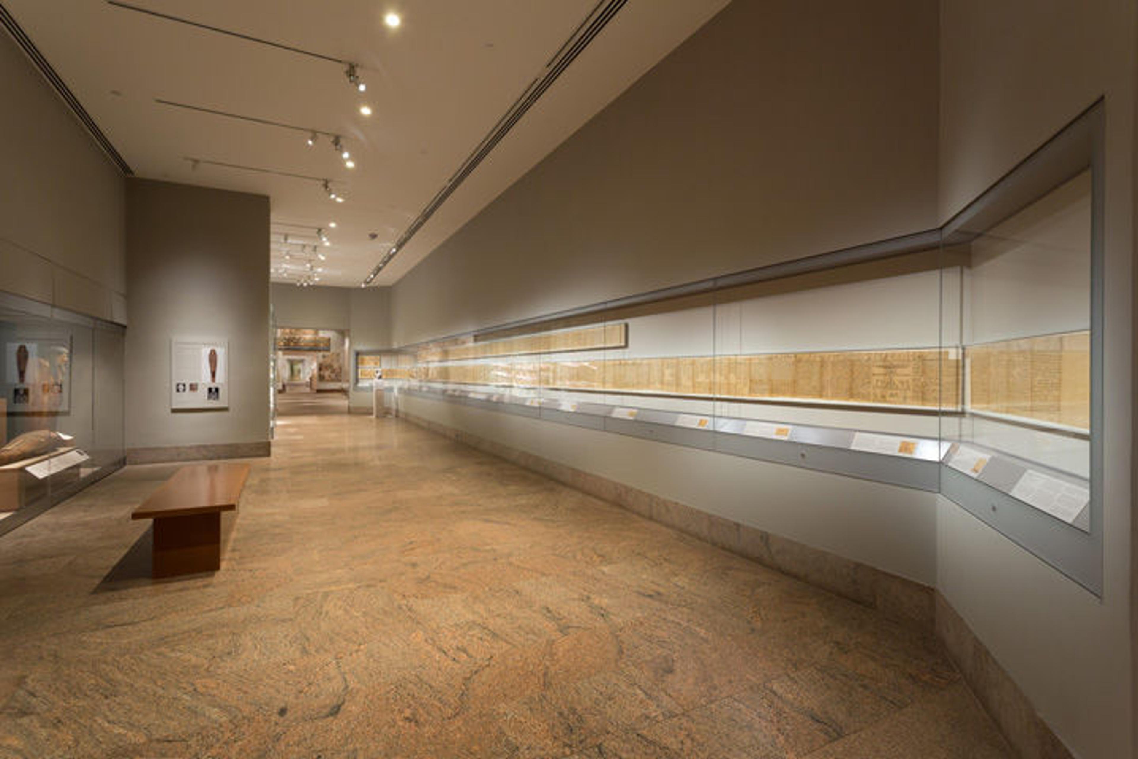 In the new installation, we display the Book of the Dead so that the band containing the illustrations is at eye level for a person of average height. Since not many of our visitors can read hieratic, the elegant, evocative drawings are a more accessible way into the minds and hearts of the ancients.