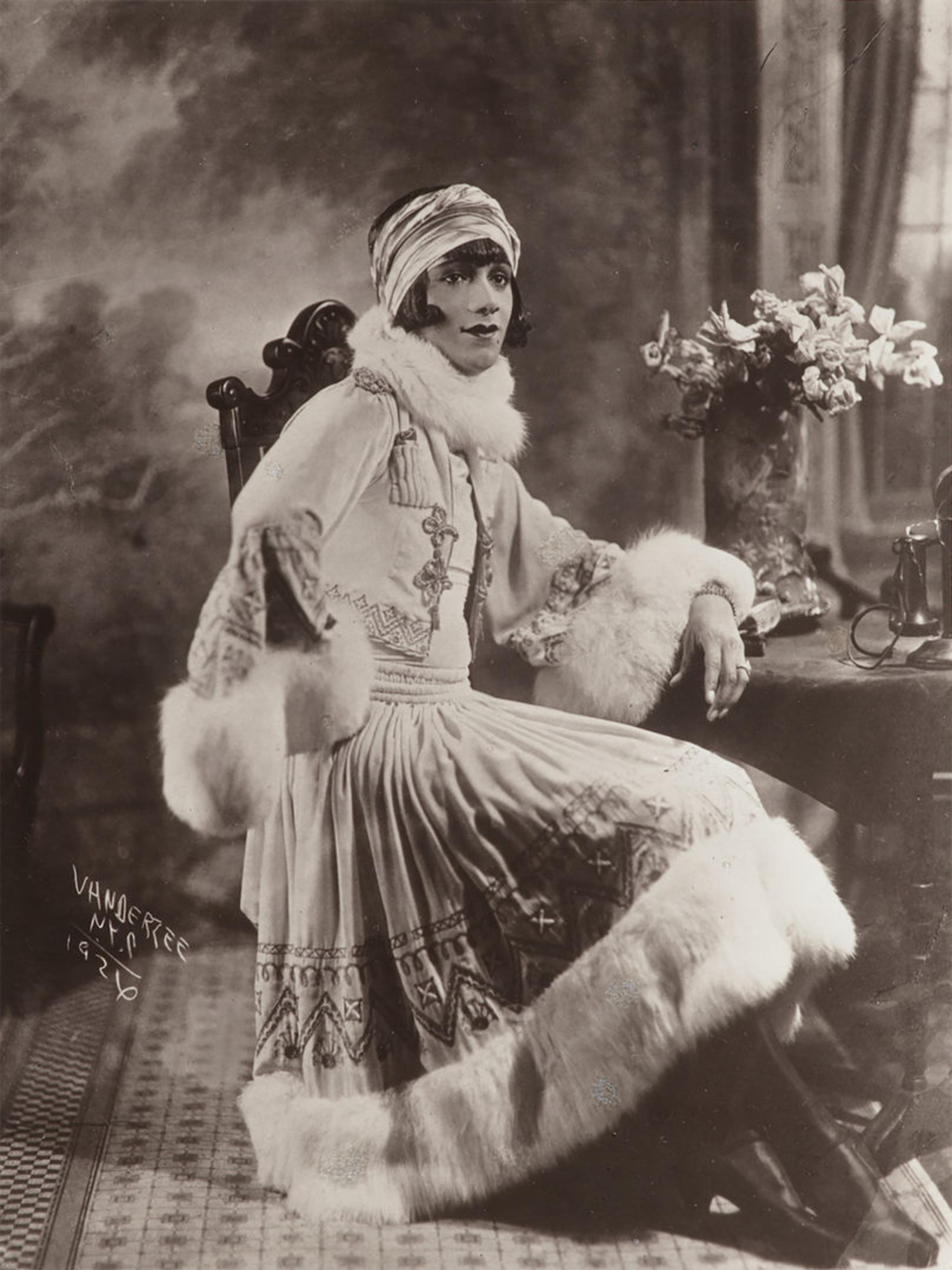 James Van Der Zee ( American, 1886–1983). [Person in Fur-Trimmed Ensemble] ,1926. Gelatin silver print, sheet: 12 × 10 in. (30.5 × 25.4 cm). James Van Der Zee Archive, The Metropolitan Museum of Art; Gift of Donna Van Der Zee, 2021 (2021.446.1.25) © James Van Der Zee Archive, The Metropolitan Museum of Art
