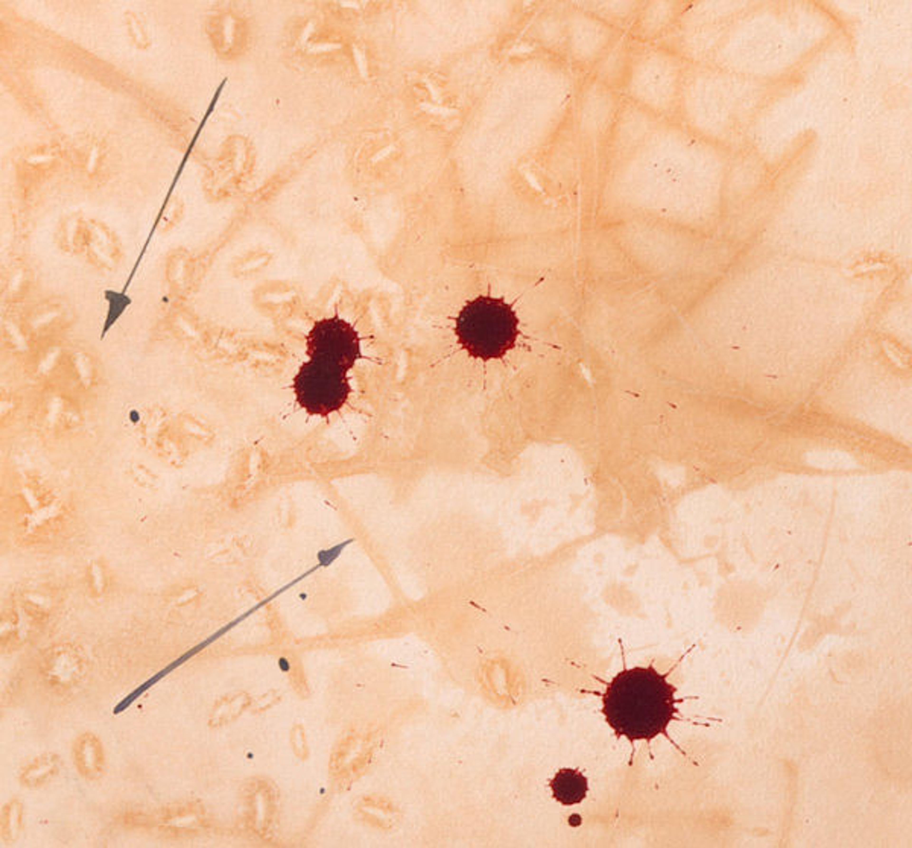 Painted on Aquaboard, a stiff support more absorbent than paper, the colors are deep and sometimes dark, but always maintain their luminosity. It feels as though they have bled into the surface with some combination of control and spontaneity. Red splotches are equally suggestive of paint and blood. Depending on your distance from the work—taking in the entire scene, or viewing only a fragment—both interpretations are satisfying. Ahmadi masterfully strikes this balance between material abstraction and clear figuration.