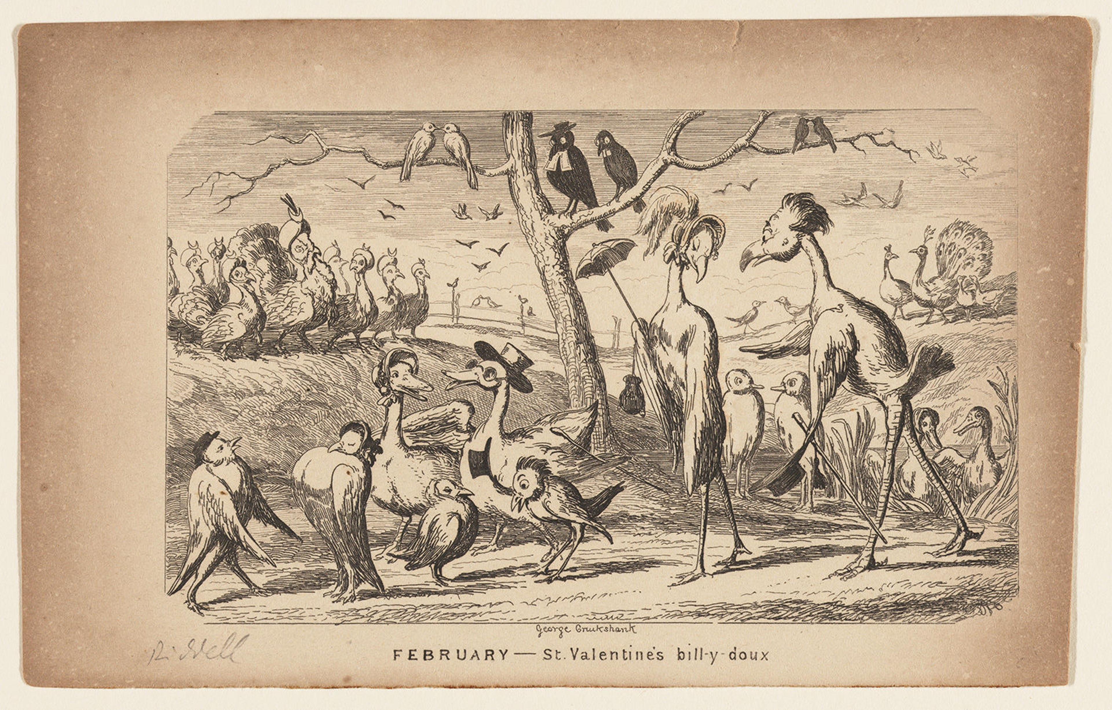 George Cruikshank (British, 1792-1878). Comic Valentine (St. Valentine bill-y doux), 1841. Lithograph, 4 × 6 1/2 in. (10 × 16.5 cm). The Metropolitan Museum of Art, New York, Gift of Mrs. Richard Riddell, 1981 (1981.1136.367)