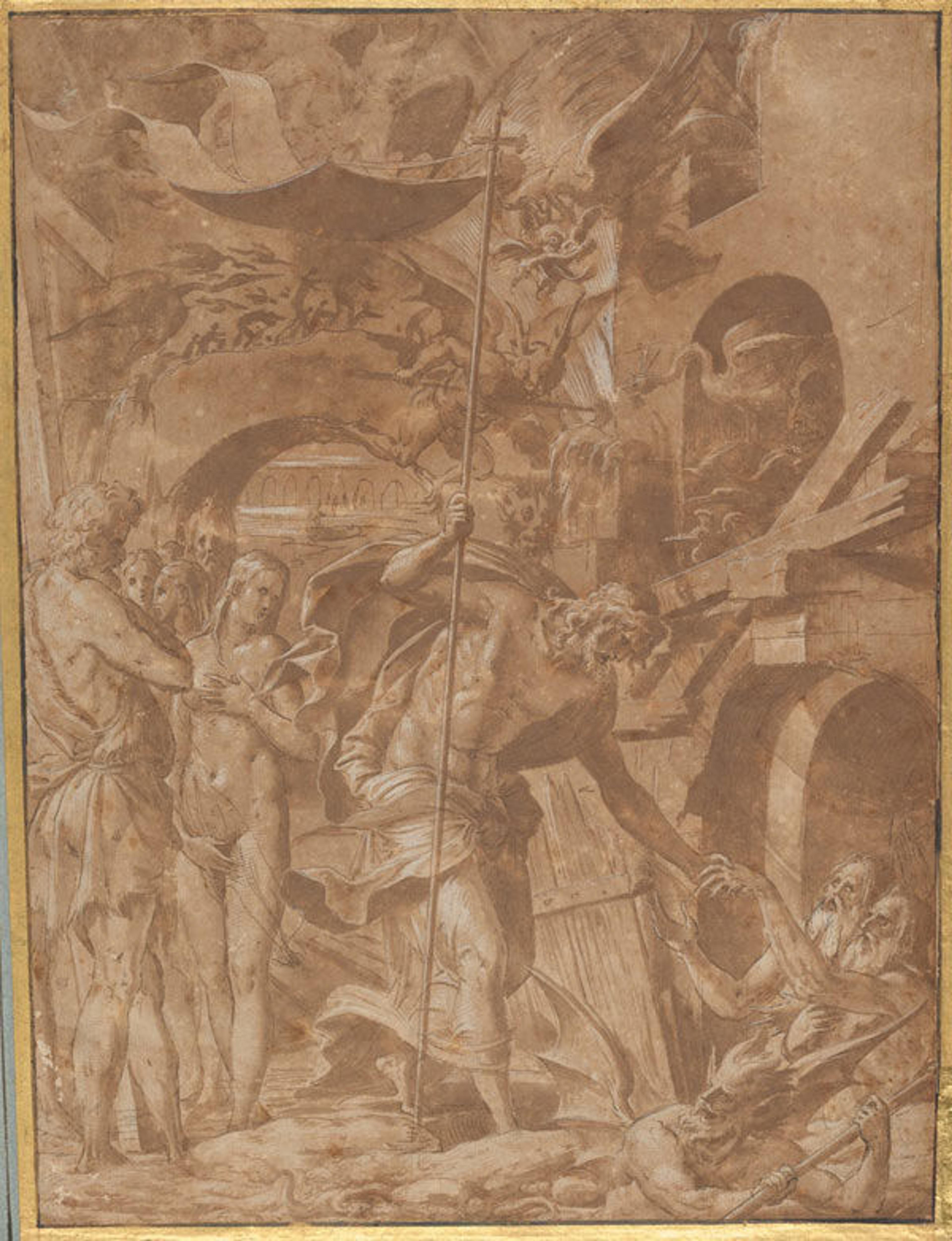Luca Penni (Italian, 1500/1504–1557). Christ in Limbo, ca. 1547–48. Black chalk, pen and brown ink, brush and brown wash, heightened with white gouache, on paper prepared with pale brown wash. The Metropolitan Museum of Art, New York, Purchase, Brooke Russell Astor Bequest and Harry G. Sperling Fund, 2014 (2014.264)
