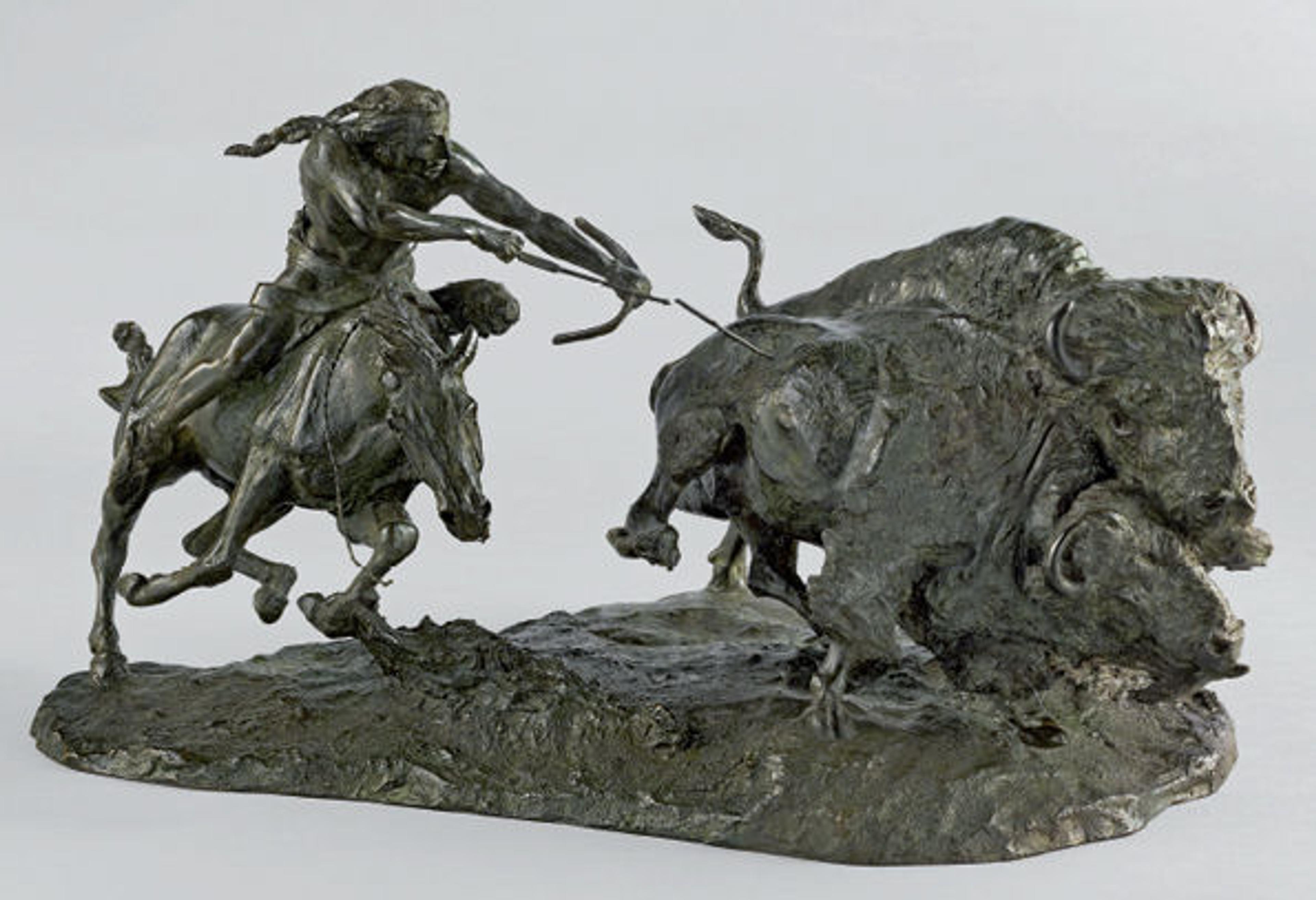 Charles M. Russell (American, 1864–1926). Buffalo Hunt, 1905 (cast 1905). Bronze; 10 x 19 x 12 3/4 in. Amon Carter Museum of American Art, Fort Worth, Texas (1962.121)