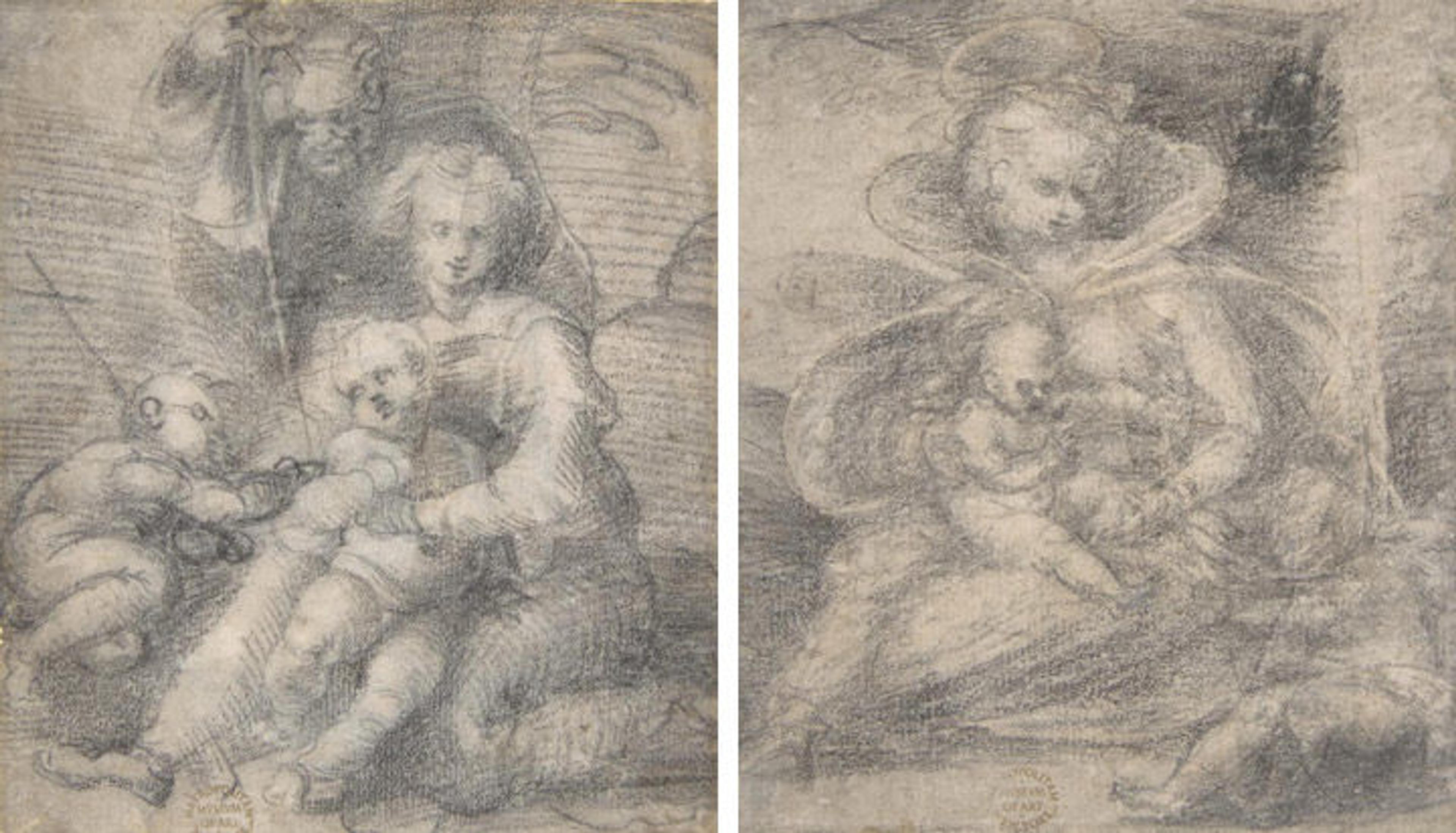 Left: Fig. 6. Workshop of Fra Bartolomeo (Bartolomeo di Paolo del Fattorino) (Italian, 1473–1517). The Holy Family with Infant Saint John the Baptist, ca. 1515. Black chalk, 5 7/16 x 4 3/4 in. (13.8 x 12.0 cm). The Metropolitan Museum of Art, New York, Gift of Cornelius Vanderbilt, 1880 (80.3.135). Right: Fig. 7. Workshop of Fra Bartolomeo (Bartolomeo di Paolo del Fattorino) (Italian, 1473–1517). The Virgin and Child, ca. 1515. Black chalk, 5 5/8 x 4 9/16 in. (14.3 x 11.6 cm). The Metropolitan Museum of Art, New York, Gift of Cornelius Vanderbilt, 1880 (80.3.134)
