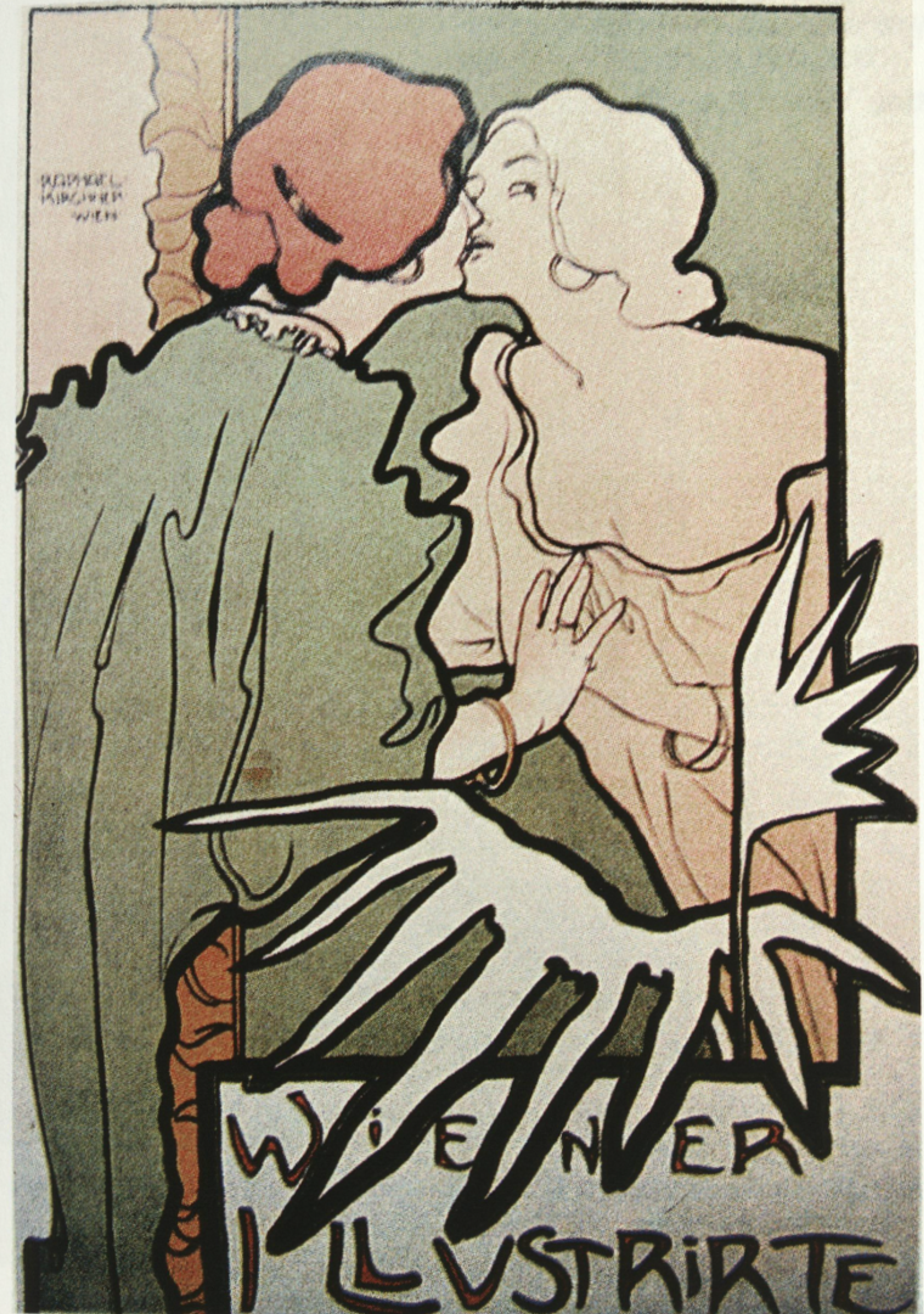 A poster by the Austrian artist Raphael Kirchner for Wiener Illustrirte Frauen Zeitung (ca. 1900), depicting a young woman kissing her reflection in the mirror.