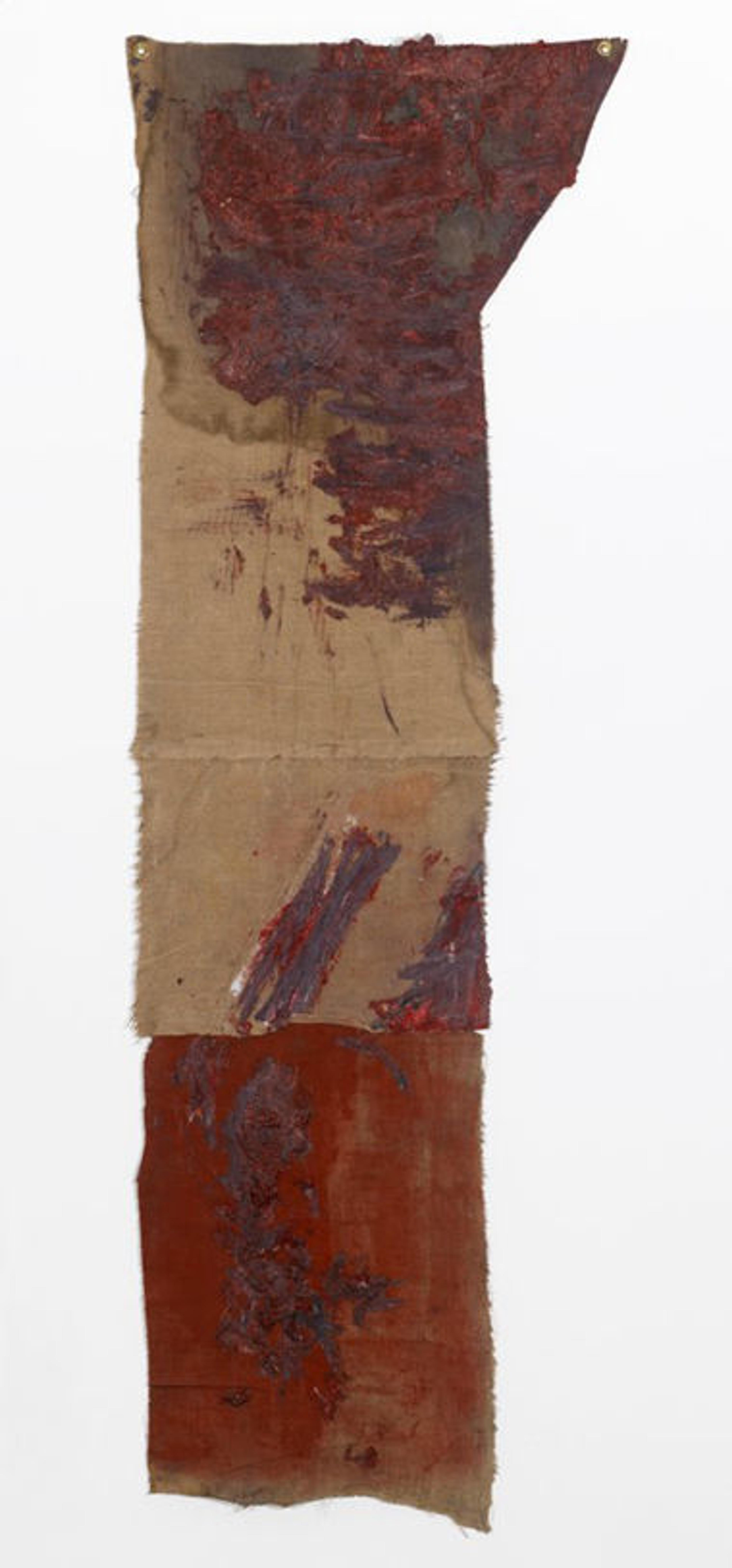 Kelly Baum: Yes, their titles—this one is Pylon V (Napalm Gate Fragment)—indicate a very direct connection to the Napalm paintings. In fact, pieces of canvas were cut from his Napalm paintings to make the Pylons.