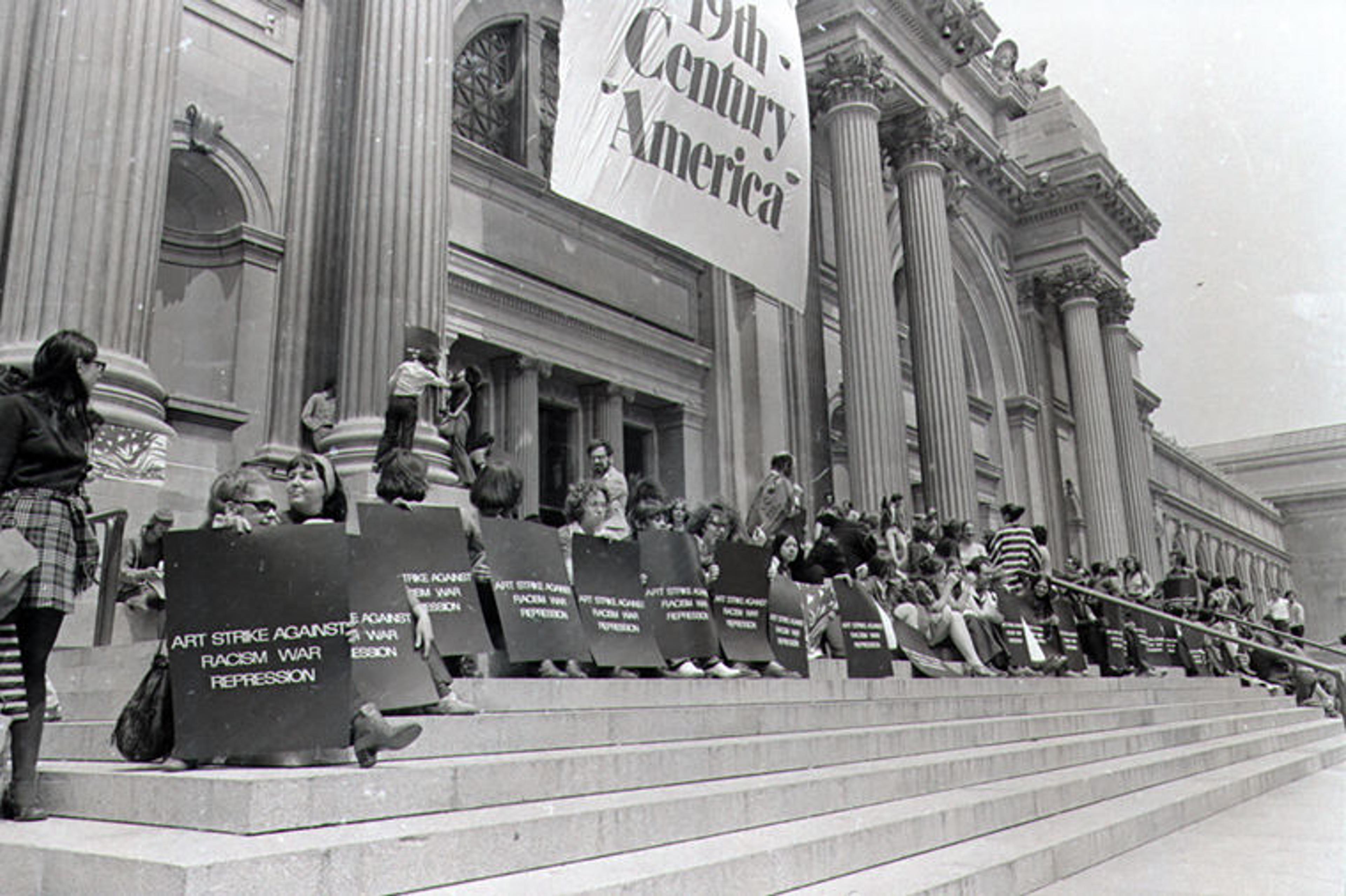 Kelly Baum: Racism, sexism, oppression, war. . . . I mean, this was 1970. There was Cambodia, the Vietnam War, Kent State. . . . So artists called for a general strike in the art world across New York. They called on museums to close their doors to protest the general state of corruption in U.S. politics. The Met refused to close. They made entrance free and they extended their hours, but they refused to close.