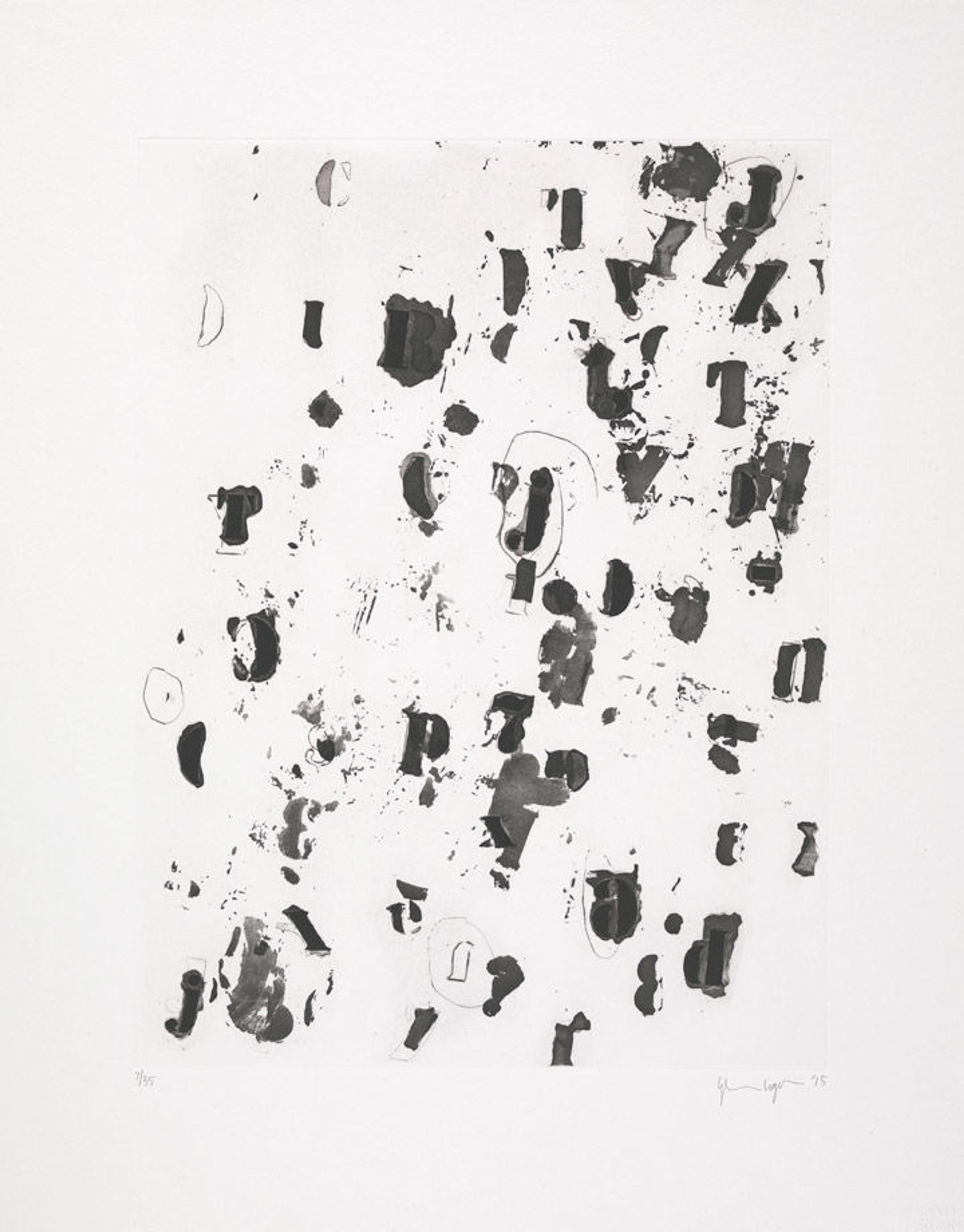 Glenn Ligon (American, born 1960). Debris Field II, 2015. Aquatint with sugar lift and drypoint and scraper; Plate: 16 x 12 in. (40.6 x 30.5 cm) Sheet: 21 1/2 x 17 in. (54.6 x 43.2 cm). The Metropolitan Museum of Art, New York, John B. Turner Fund, 2015 (2015.631)