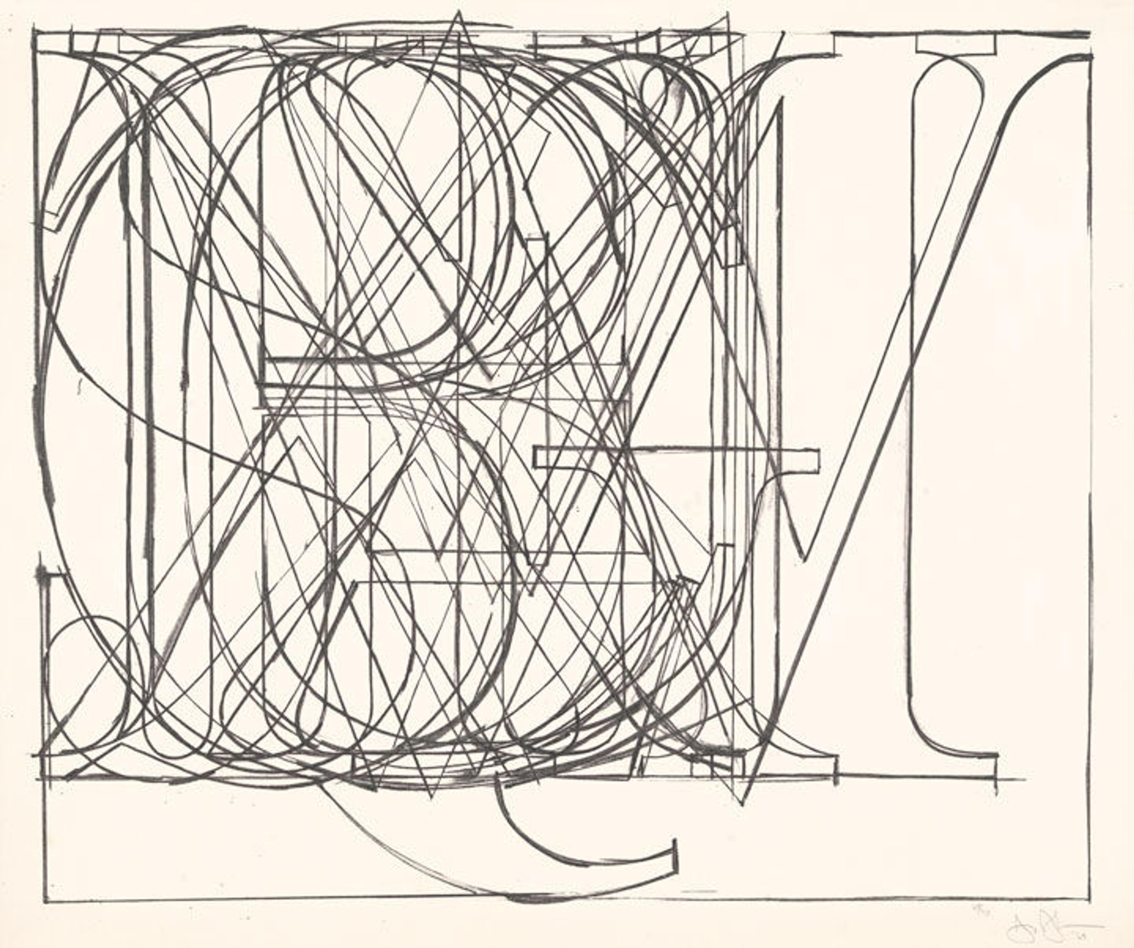 This is the first work Johns created using digital technology. He drew the various components, including his signature, on different sheets of paper that Bill Goldston, master printer and director of Universal Limited Art Editions, then combined digitally for the artist's approval.