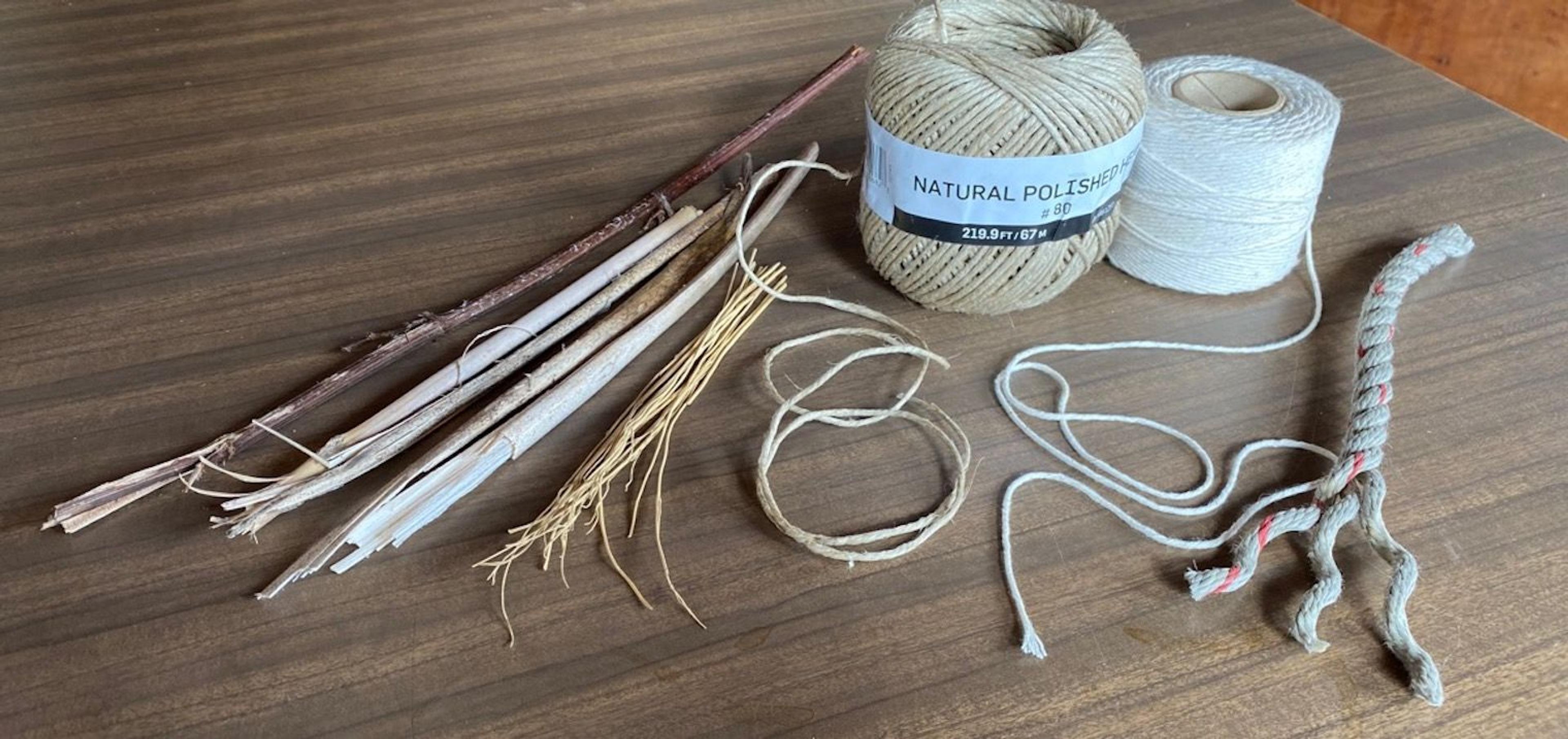 Once you’ve gathered your brush materials, bundle them together, then bind them with something flexible like string and trim off the loose ends.