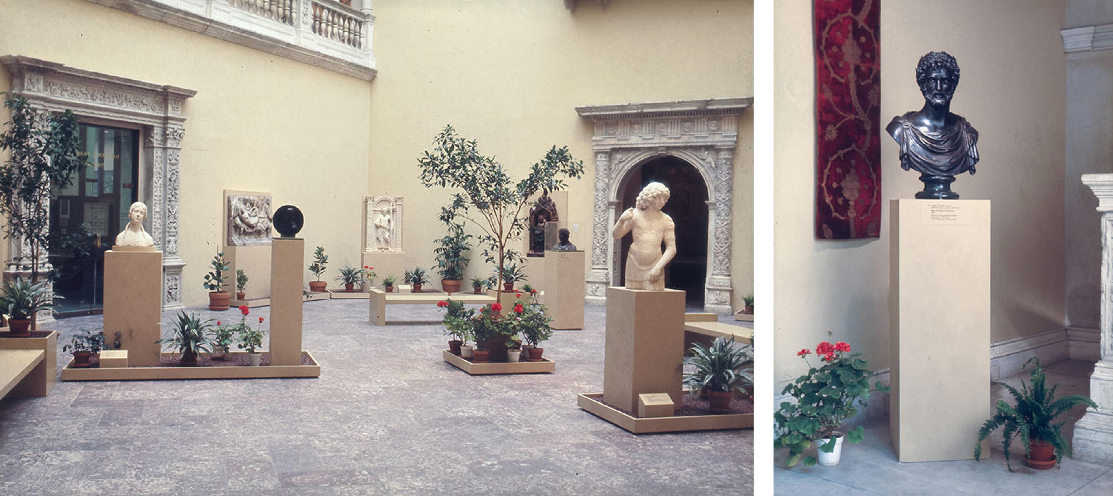 Left: Early Renaissance Sculpture from Northern Italy, June 5–November 30, 1973. Right: Installation view of the bust of Emperor Antoninus Pius