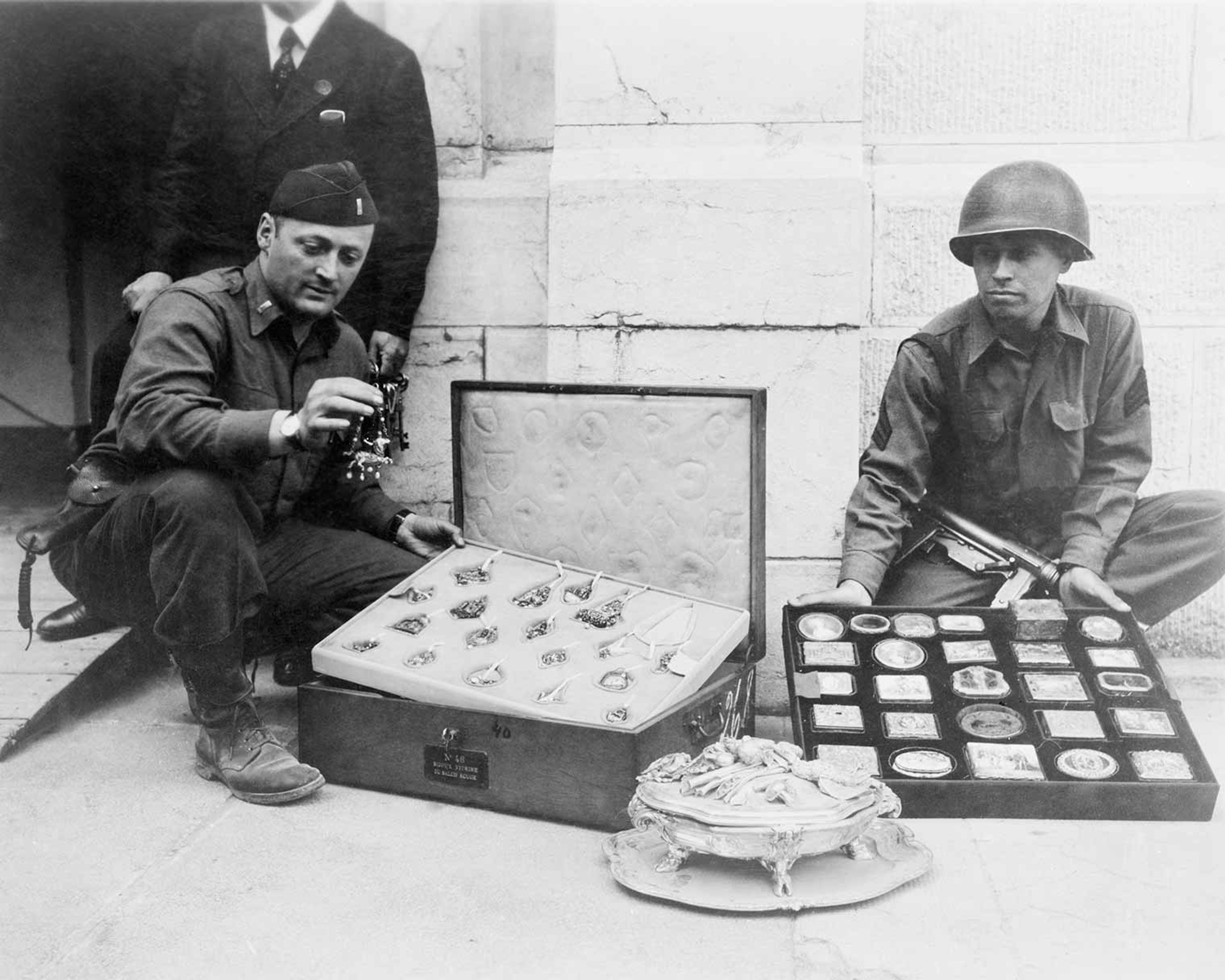 First Lieutenant James J. Rorimer (left) with recovered objects at Neuschwanstein Castle in Bavaria, Germany, in May 1945. Photo by U.S. Signal Corps