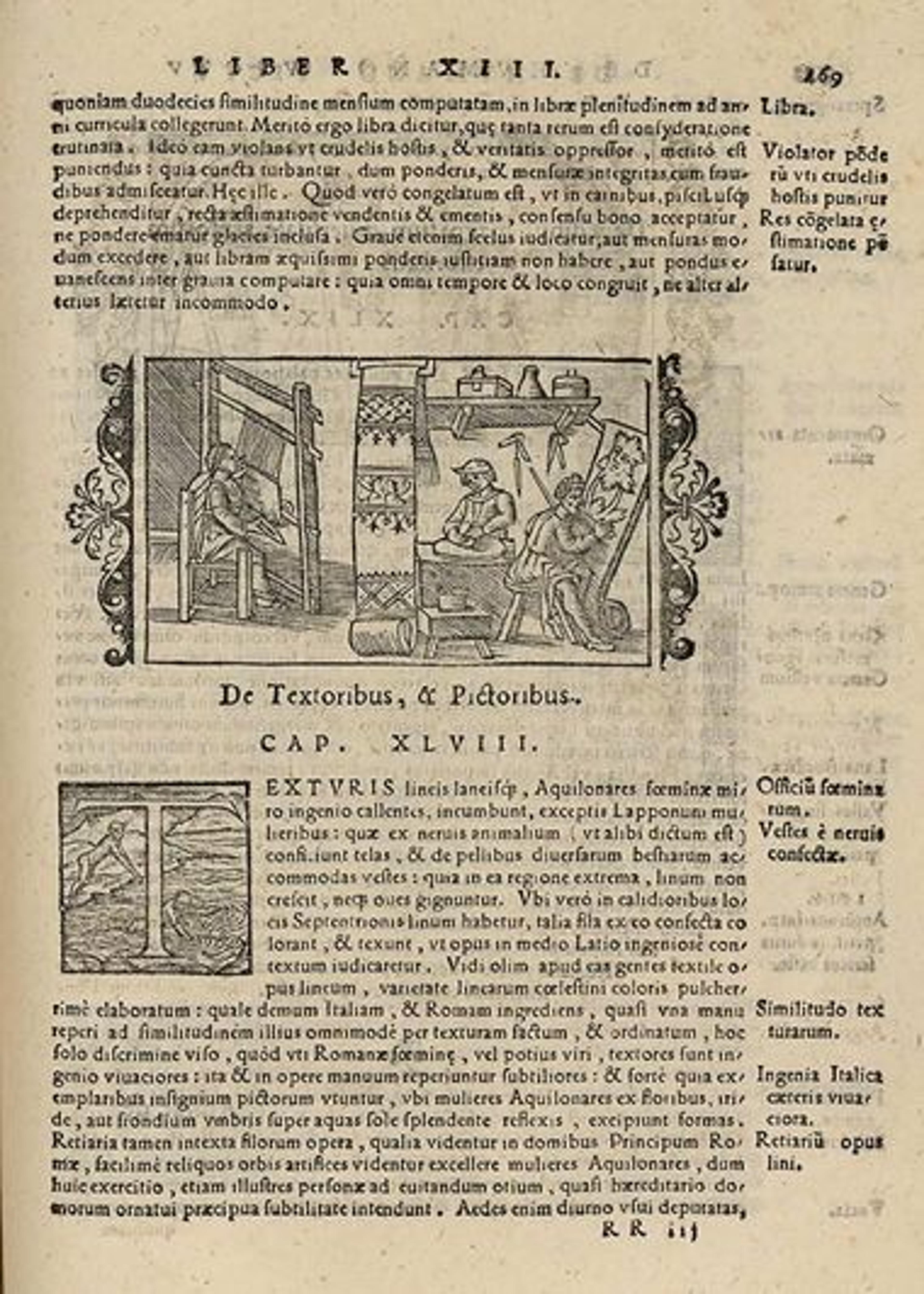 Left: This 16th-century illustration depicts weavers (at left) working alongside painters (at right). Chapter XLVIII: "De Textoribus, & Pictoribus," in Olaus Magnus, Historia de gentibus septentrionalibus (A Description of the Northern Peoples) (Rome, 1555). Image via Project Runeberg