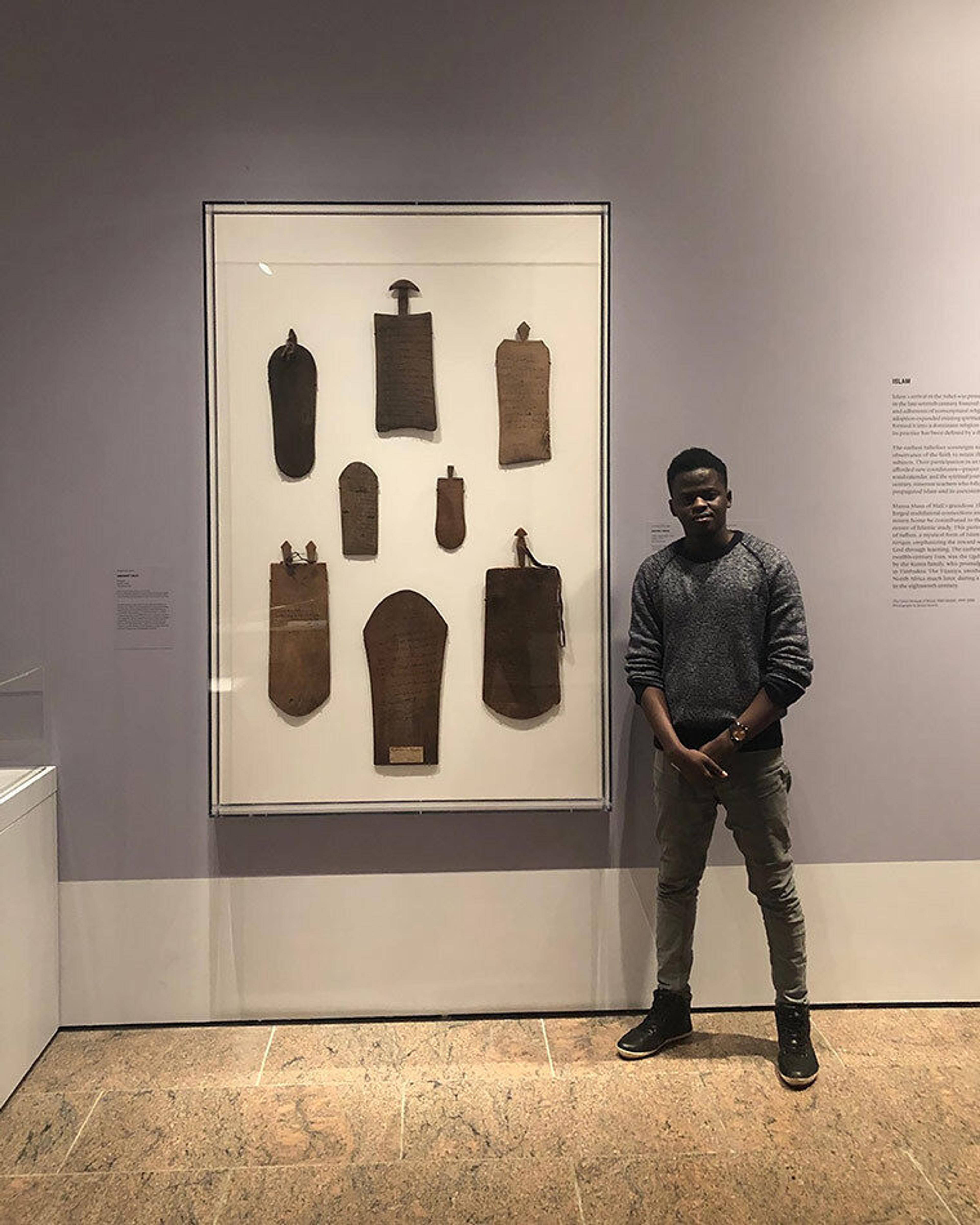 When the exhibition opened, I was pleased to see how fascinated the visitors were by African art and culture. I felt proud to answer the questions some of them asked me about the objects in the exhibition. For example, one visitor asked me about the role of wooden tablets that children use to study. Others asked me about the Bamana boubou worn by Mande hunters called donso. As a member of this group of donso, I felt great pride seeing these visitors discover these objects and answering questions about them. I saw how African art was appreciated by others.