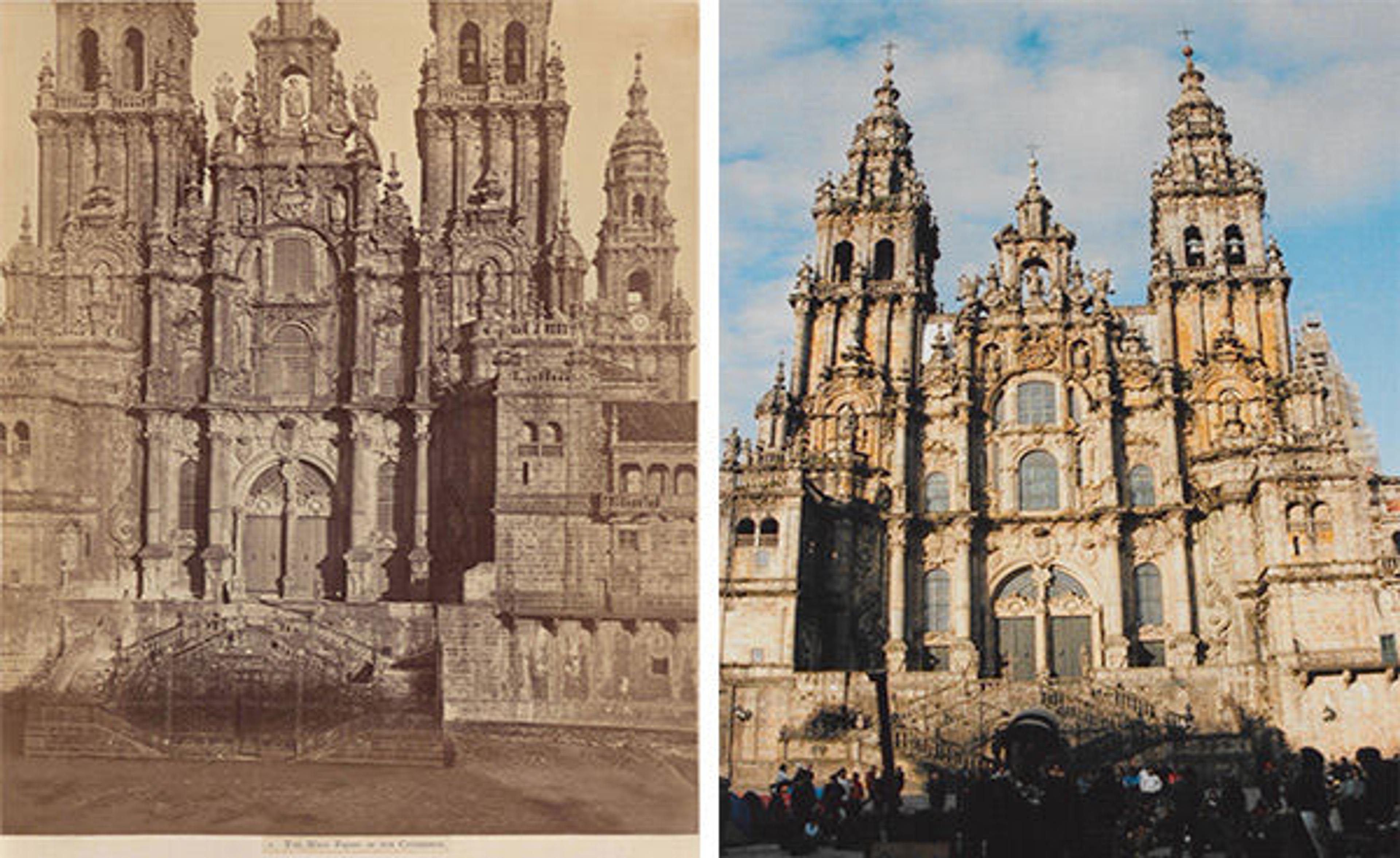 Left: West front of the Cathedral of Santiago de Compostella in Spain, in 1868. Photograph by Charles Thurston Thompson. Right: West front of the cathedral, in 2011. All 2011 photos courtesy of the author