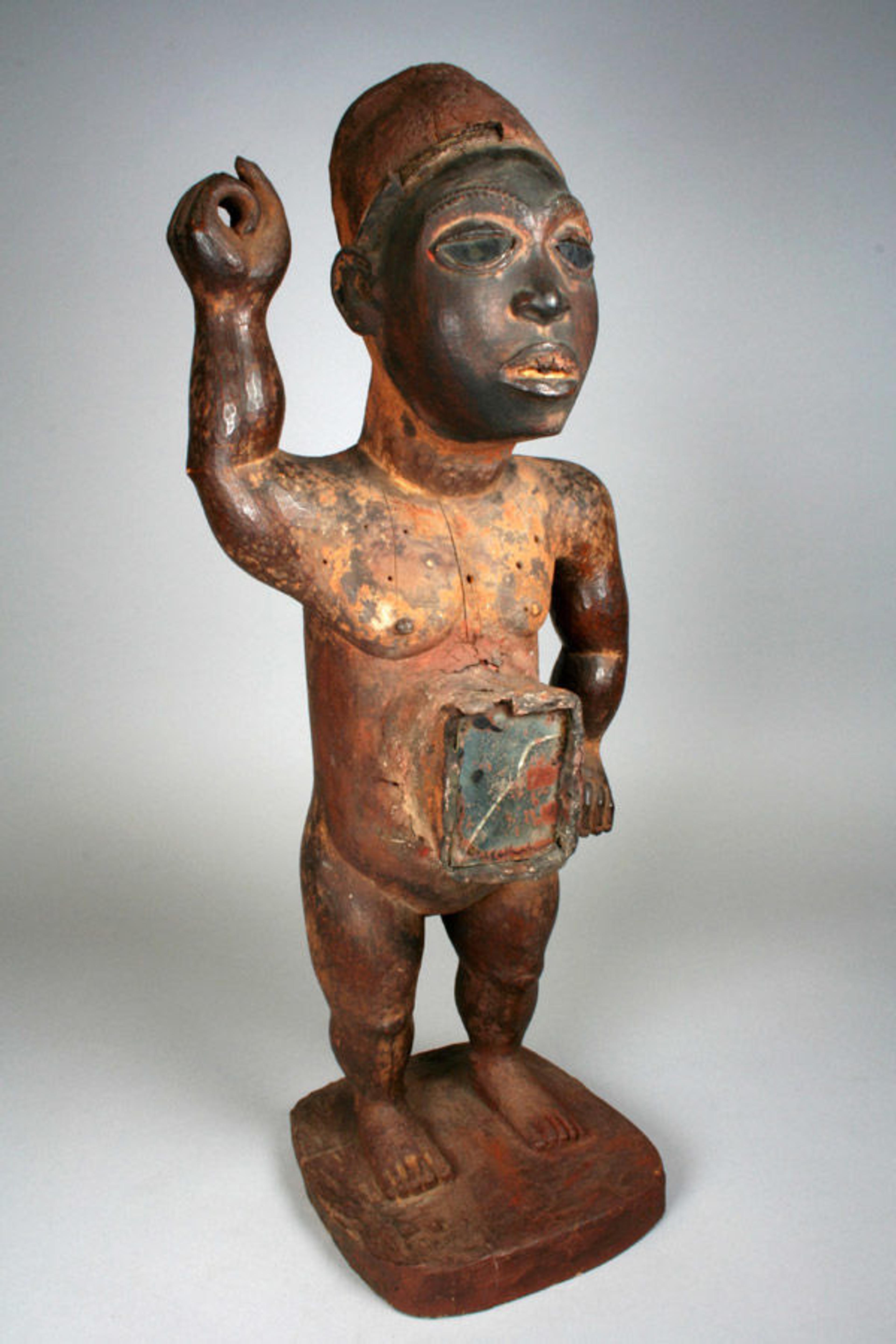 Power Figure: Male (Nkisi Nkondi), 19th–20th century. Kongo peoples, Democratic Republic of the Congo. Wood, mirror, cloth, paint, pigment; H. x W. x D.: 24 x 9 5/8 x 7 3/4 in. (61 x 24.5 x 19.7 cm). The Metropolitan Museum of Art, New York, The Michael C. Rockefeller Memorial Collection, Bequest of Nelson A. Rockefeller, 1979 (1979.206.50)