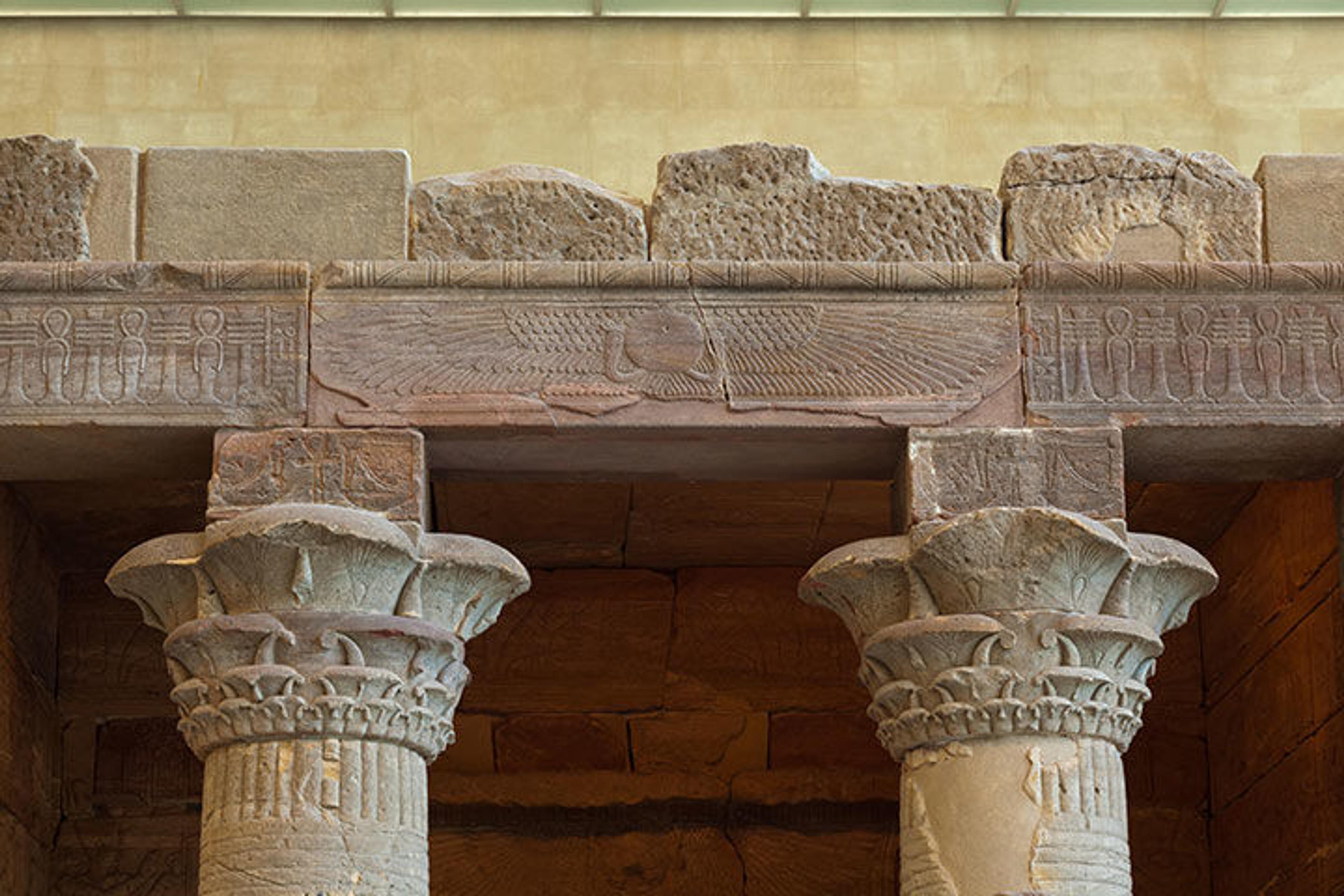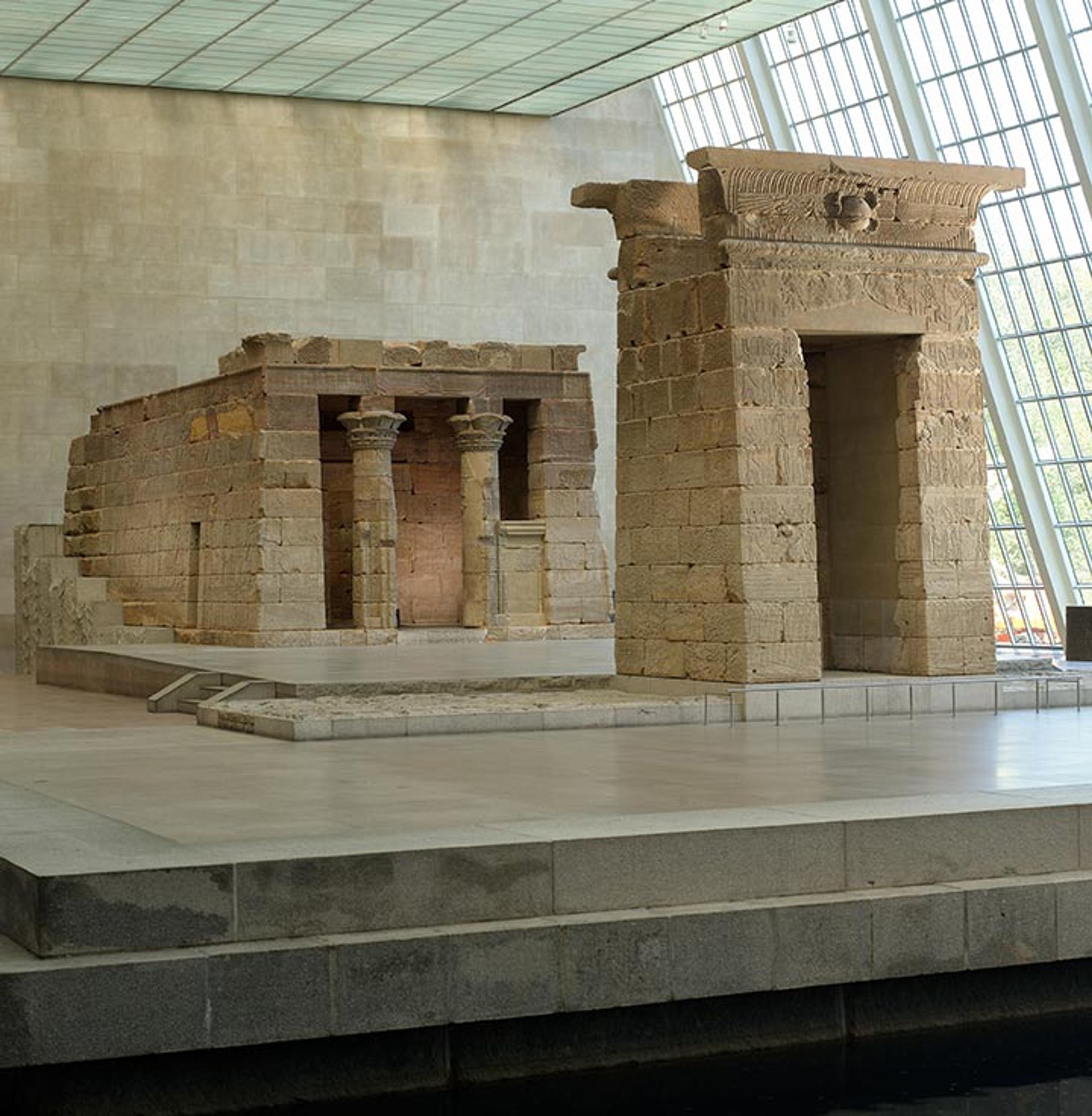 The Temple of Dendur. Roman Period, reign of Augustus Caesar, completed by 10 B.C. From Egypt, Nubia, Dendur, West bank of the Nile River, 50 miles South of Aswan. Aeolian sandstone, Temple proper: H. 6.40 m (21 ft.); L. 12.50 m (41 ft.); Gate: H. 8.08 m (26.5 ft.); W. 3.66 m (12 ft.); D. 3.35 m (11 ft.). The Metropolitan Museum of Art, New York, Given to the United States by Egypt in 1965, awarded to The Metropolitan Museum of Art in 1967, and installed in The Sackler Wing in 1978 (68.154)