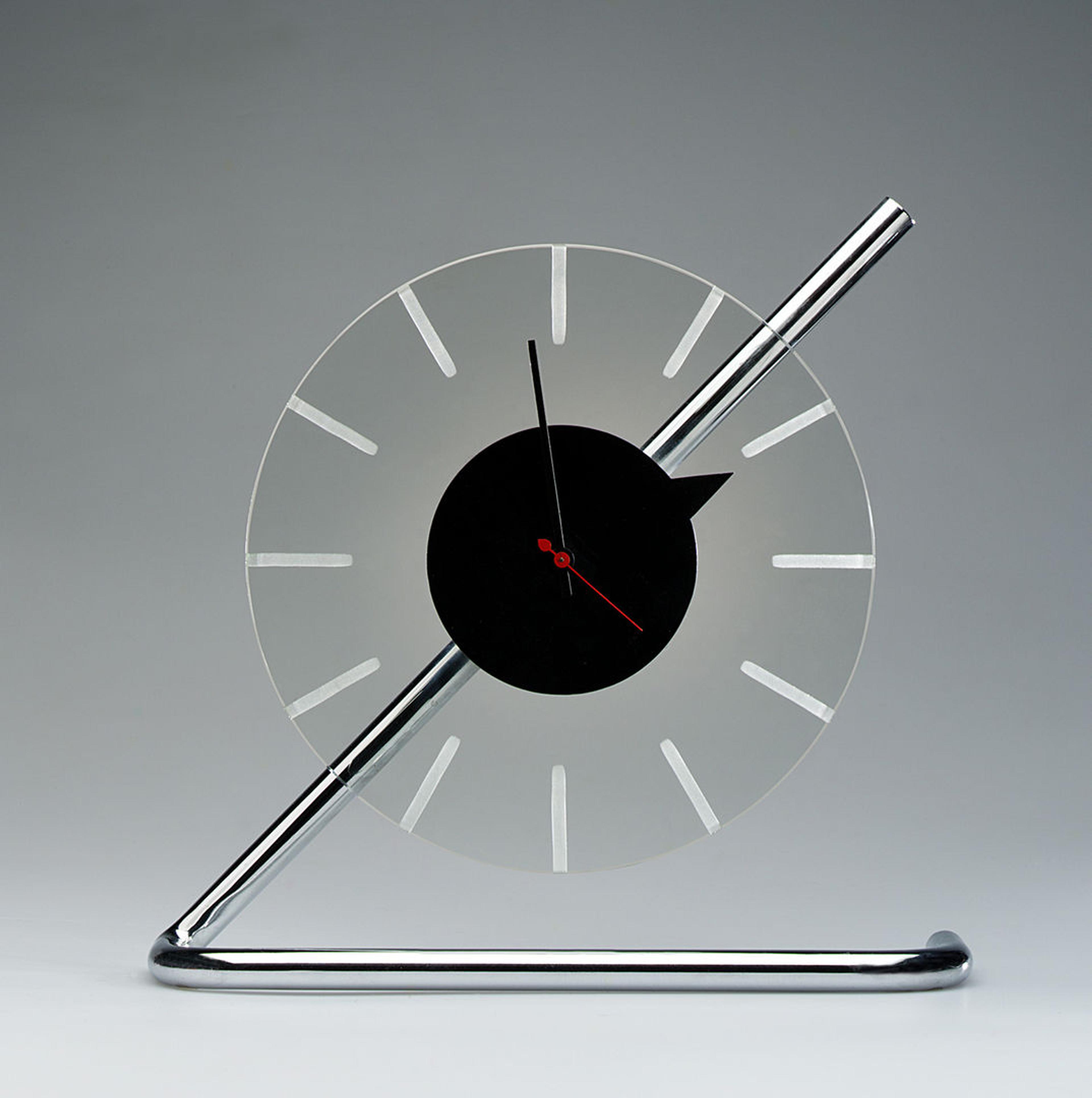 Designed by Gilbert Rohde (American, 1894–1944). Manufactured by the Herman Miller Furniture Company, Zeeland, Mich. Electric clock, ca. 1933. Chrome-plated metal and glass 121/8 × 121/2 × 31/2 in. (30.8 × 31.8 ×8.9 cm). The Metropolitan Museum of Art, New York, John C. Waddell Collection, Gift of John C. Waddell, 2000 (2000.600.15)