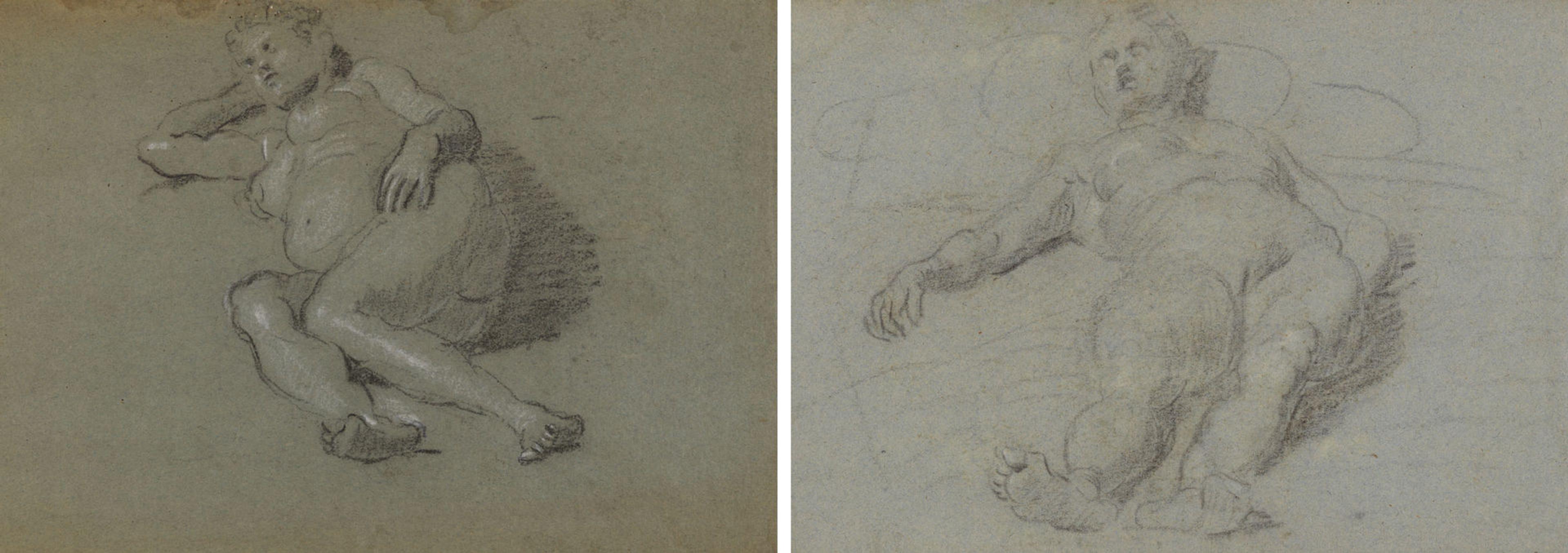 Domenico Tintoretto (Italian, 1560–1635). Left: Reclining Female Nude, early 17th century. Black and white chalk on blue paper, 7 11/16 x 11 7/16 in. (19.6 x 29.1 cm). The Metropolitan Museum of Art, New York, Robert Lehman Collection, 1975 (1975.1.539). Right: Reclining Female Nude, early 17th century. Black and white chalk on blue paper, 7 13/16 x 11 1/4 in. (19.9 x 28.6 cm). The Metropolitan Museum of Art, New York, Robert Lehman Collection, 1975 (1975.1.534)
